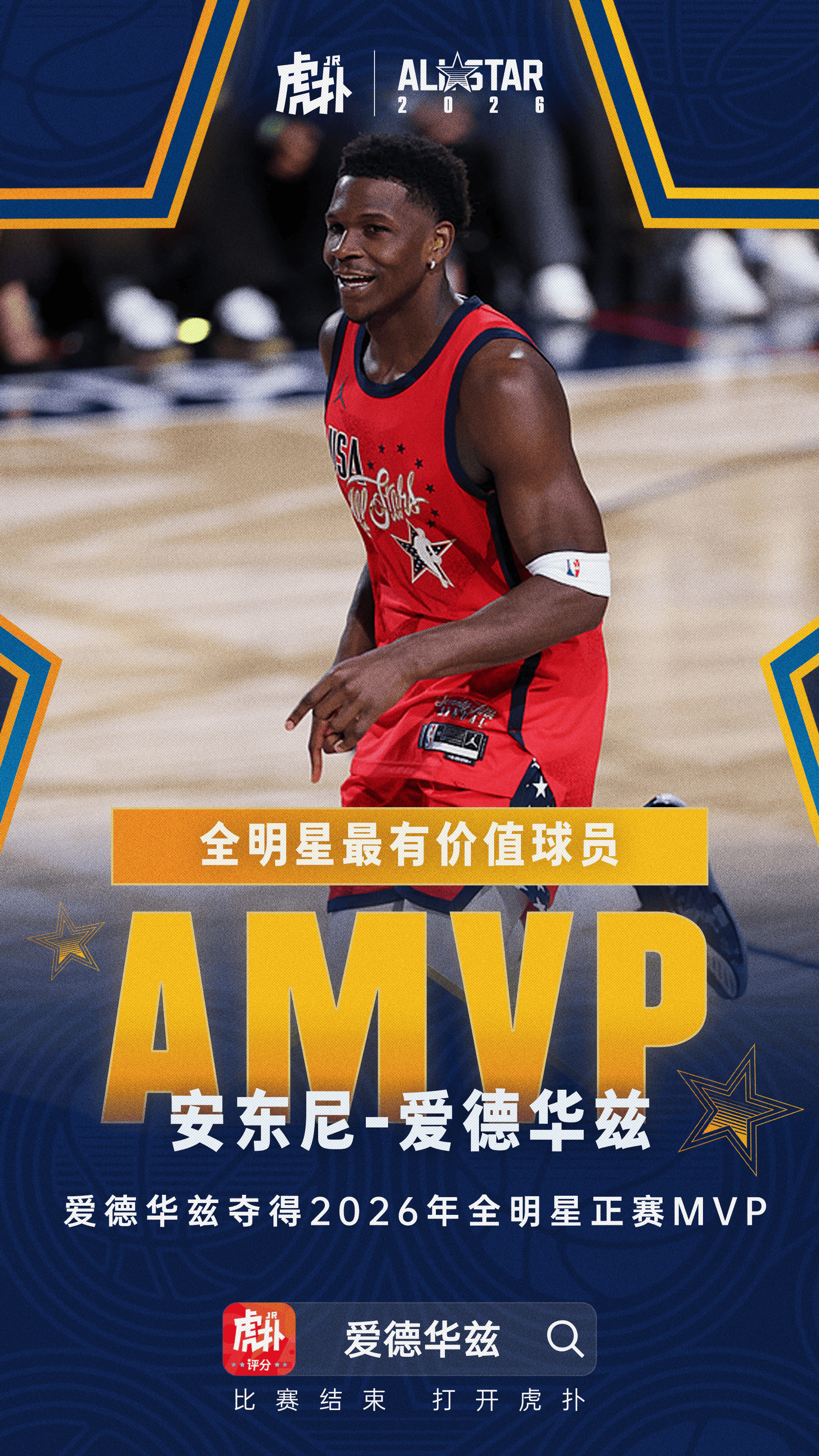 赛后,NBA官方公布了本届全明星赛的MVP球员,为森林狼球员安东尼-爱德华兹。