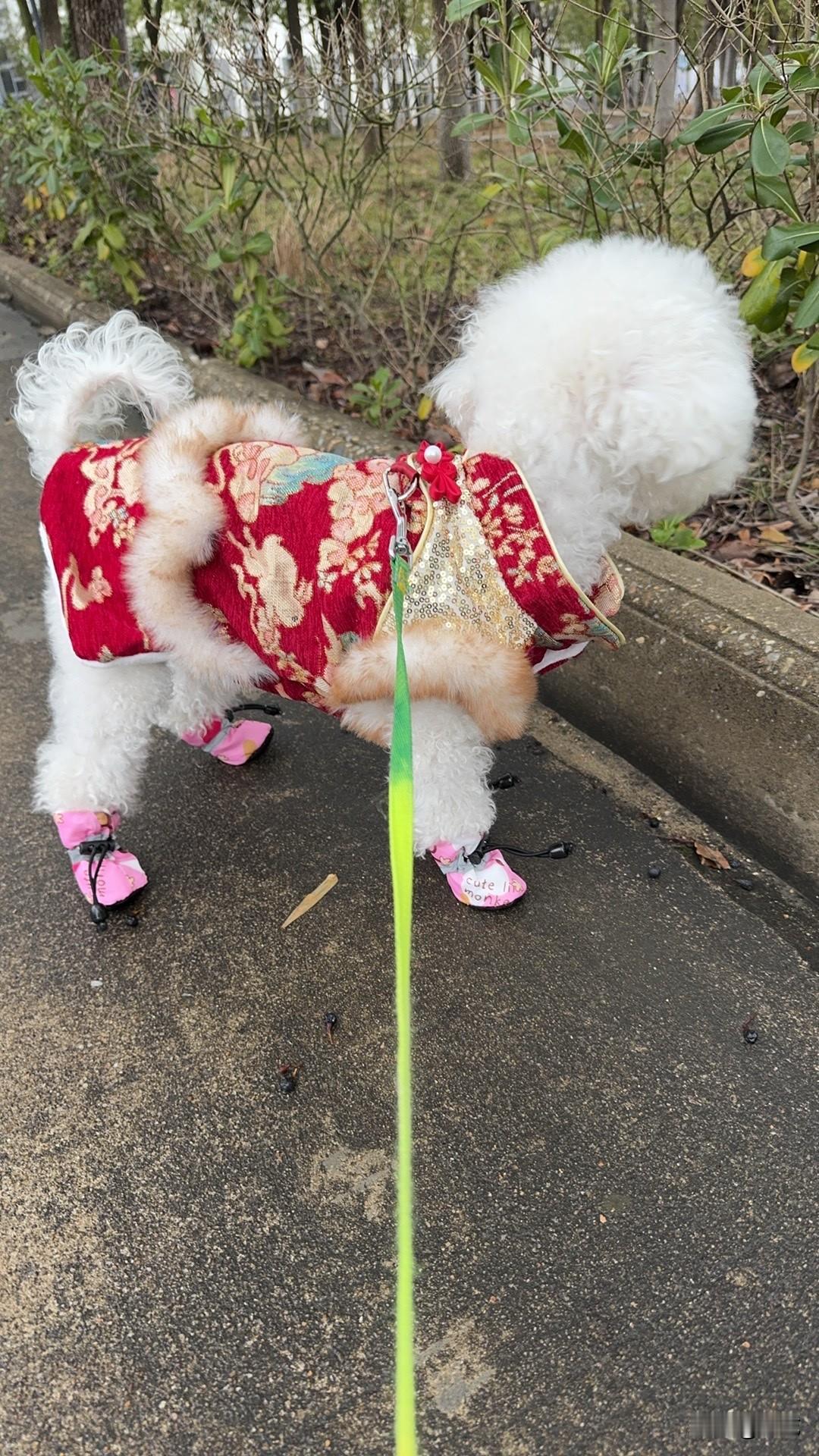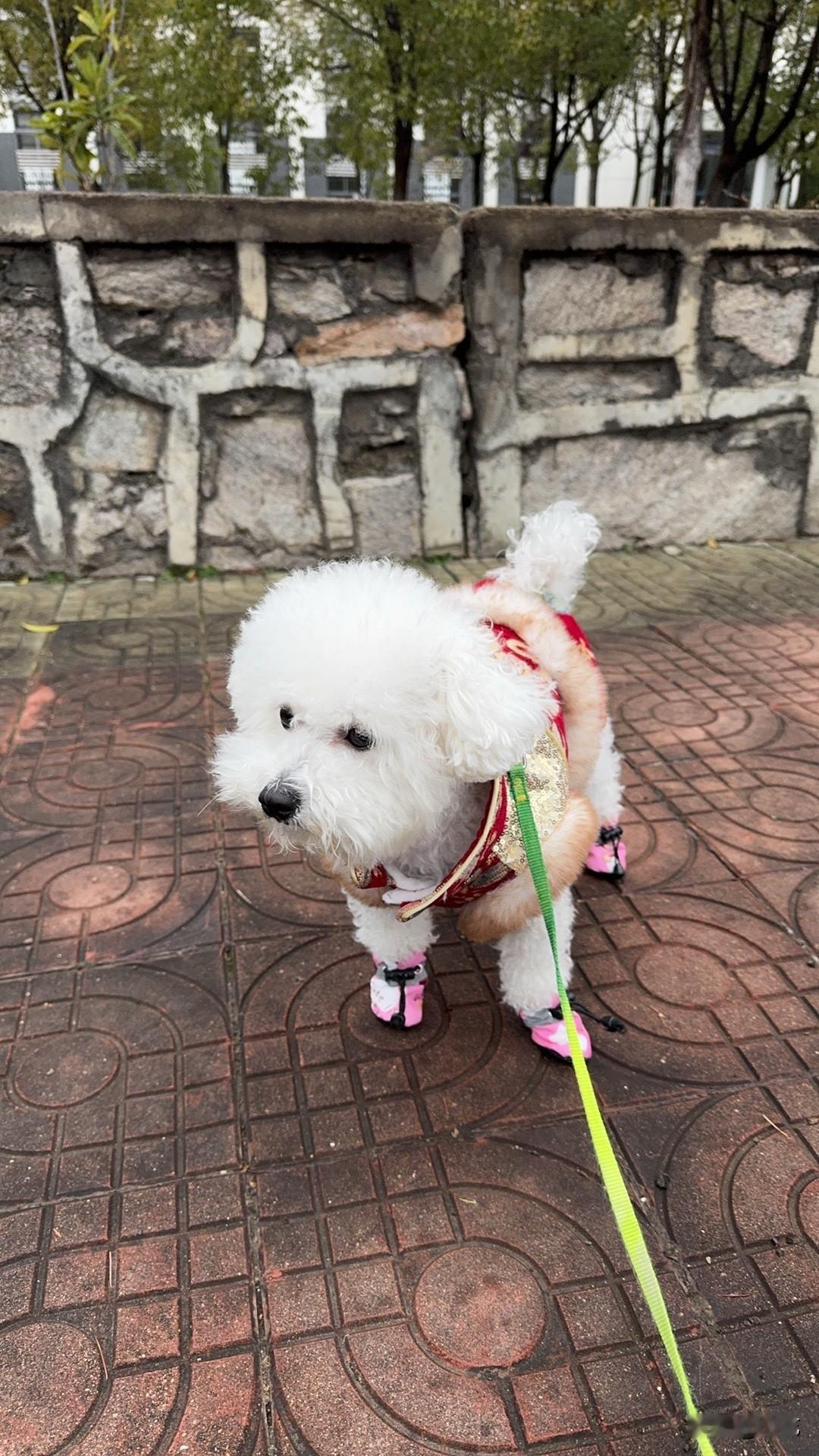 大年三十,我给小比熊穿上新衣服,那模样,简直萌翻了!它美得不行,非要出来溜达一圈,估计是想炫耀它的新行头。 现在给宠物变装可流行了,小比熊凭借可爱外形和活泼性格,成了变装界的主角。就像我朋友家的比熊犬,衣橱里衣服多得很,挑衣服都得纠结半天。有时候让狗狗自己选,它爪子一拍,就定了。我家小比熊穿上这新衣服,走在路上那回头率杠杠的,感觉它都快成“时尚明星”了。这过年带着它出来,喜庆又好玩!