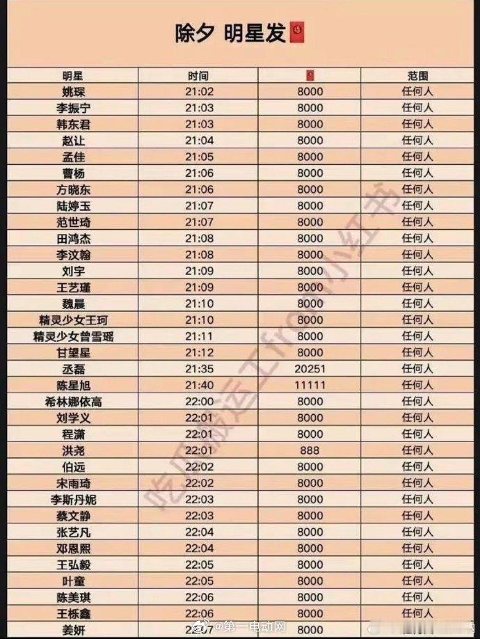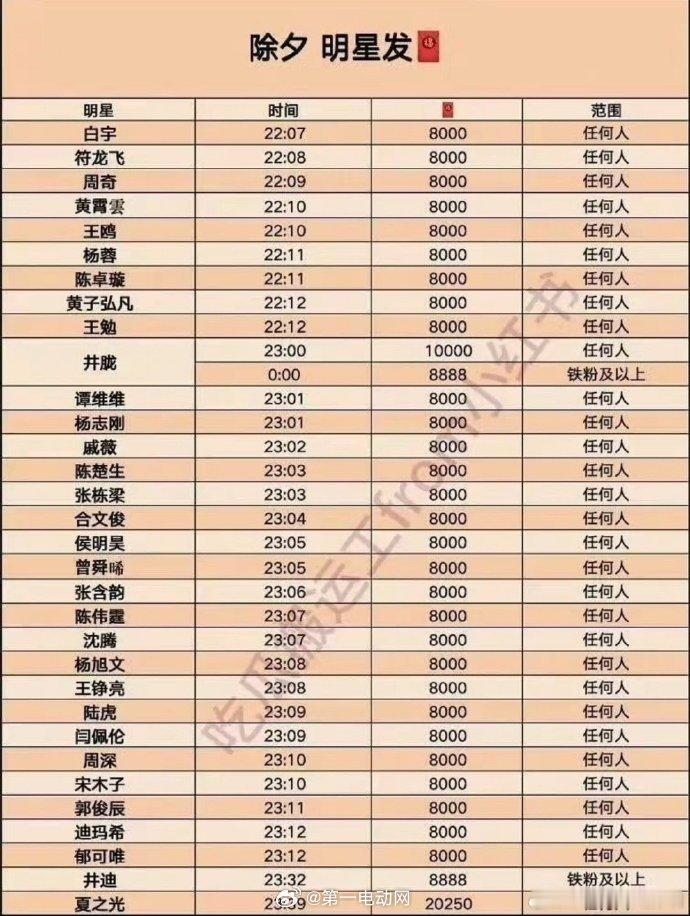 今天就是马年除夕啦,下面是今年明星发红包时间!17:0018:0020:00