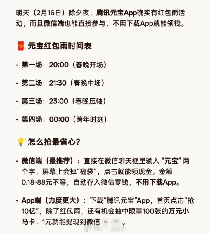 今年的春节红包活动似乎比往年更加丰富!千问、豆包、元宝这三家AI工具先卷起来,还有微博卡点,先把攻略给弄上!2026红包分组千问红包雨除夕