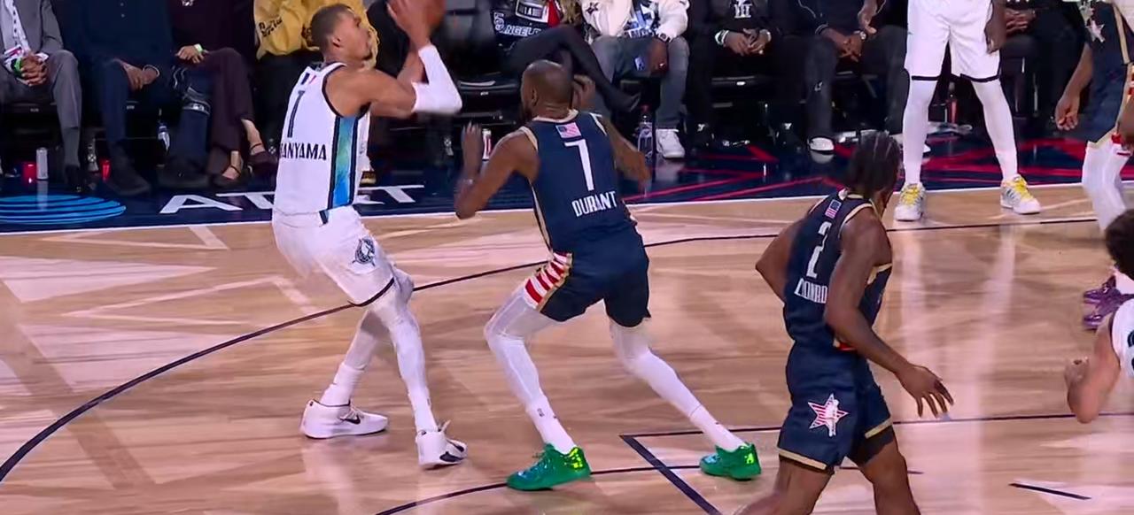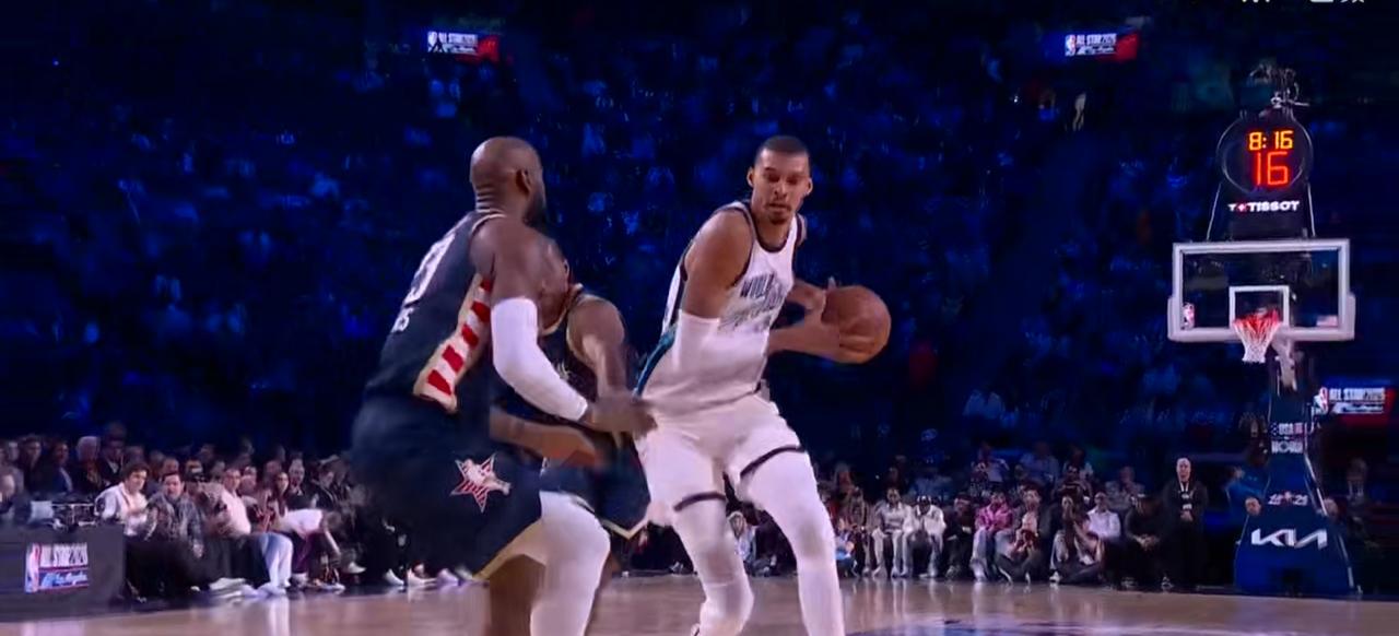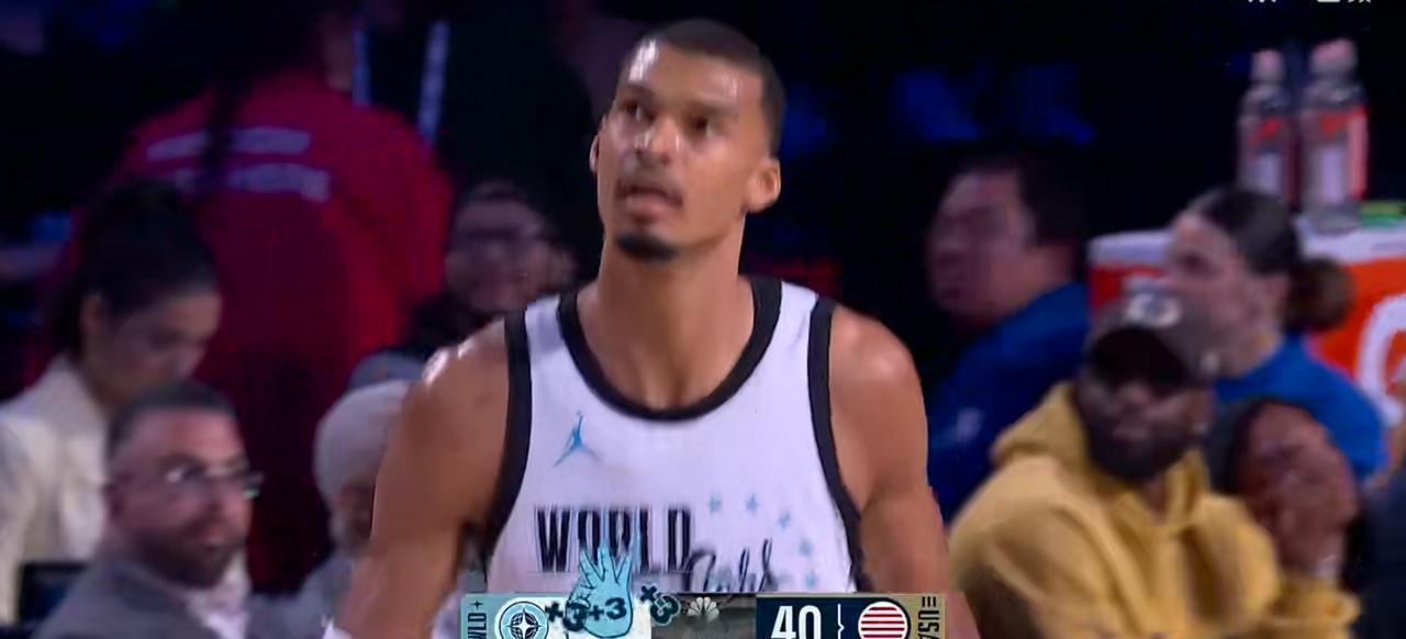 2026年NBA全明星赛,文班亚马的表现太亮眼了。在此前的范特西篮球里,他场均24分、11个篮板和2次盖帽,是联盟唯一达到这数据的球员,统治力超强。 全明星正赛揭幕战,赛制全新,美国双队大战世界联队。首场世界队对阵星辰队,文班亚马一开场就点燃全场。他先是持球突破内线劈扣,接着外线接球就投。最终他空砍14 + 6 + 3,世界队惜败。虽然比赛输了,但文班亚马的表现可圈可点,未来在全明星赛肯定还有更精彩的发挥。