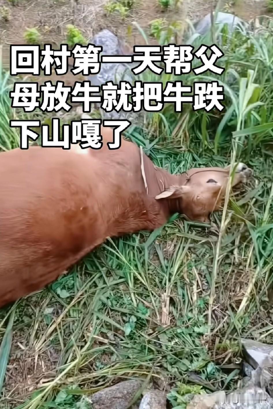 回村第一天,帮父母放牛就把牛跌 下山嘎了,家里最没用的,把家里最有用的给搞死了 小时候放羊,把羊拴半坡上,羊相当于跌倒了往下挣扎,最后吊死了。你的意思是,它自己跳下去自嘎了?它用命来陷害你?? 果然是去过大城市的人,想吃牛肉,都可以用计,可惜这牛到死,都不想到,少主回家先要它命