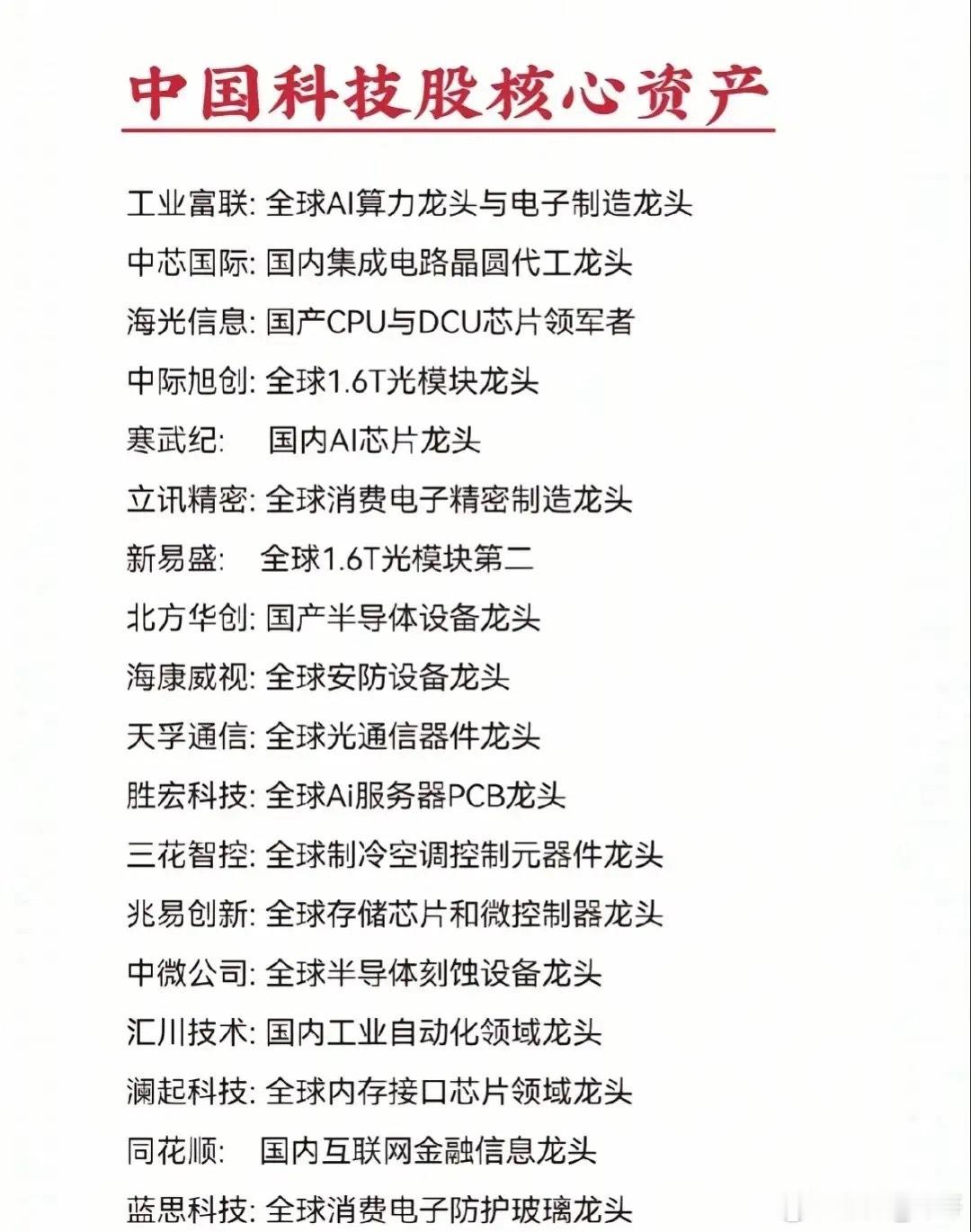 硬核收藏!中国科技股核心资产全梳理!