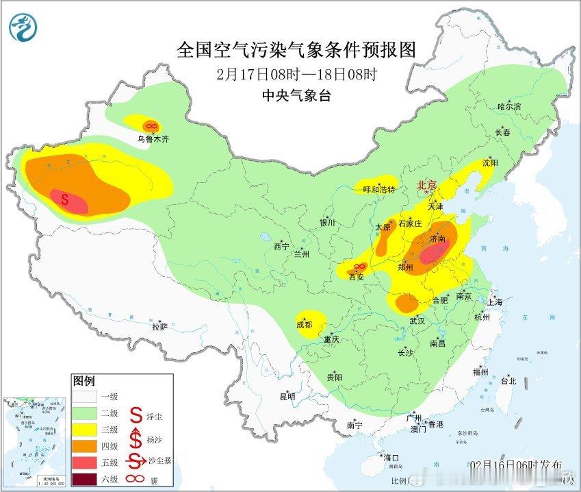 【雾 霾 沙尘】今晨我国大部地区能见度良好,南方局地零星有些大雾,甚至强浓雾,比如广西田林,今晨能见度不到200米。从空气质量看,今晨中东部大多良好。不过因为过年燃放烟花,今晚到明天,污染可能有个快速增多,随后减少。但在陕西关中、山西汾河谷地、河南北部、山东西部,大气扩散条件不利,污染和霾可能持续。另外新疆塔里木盆地的沙尘污染,今后还会持续。