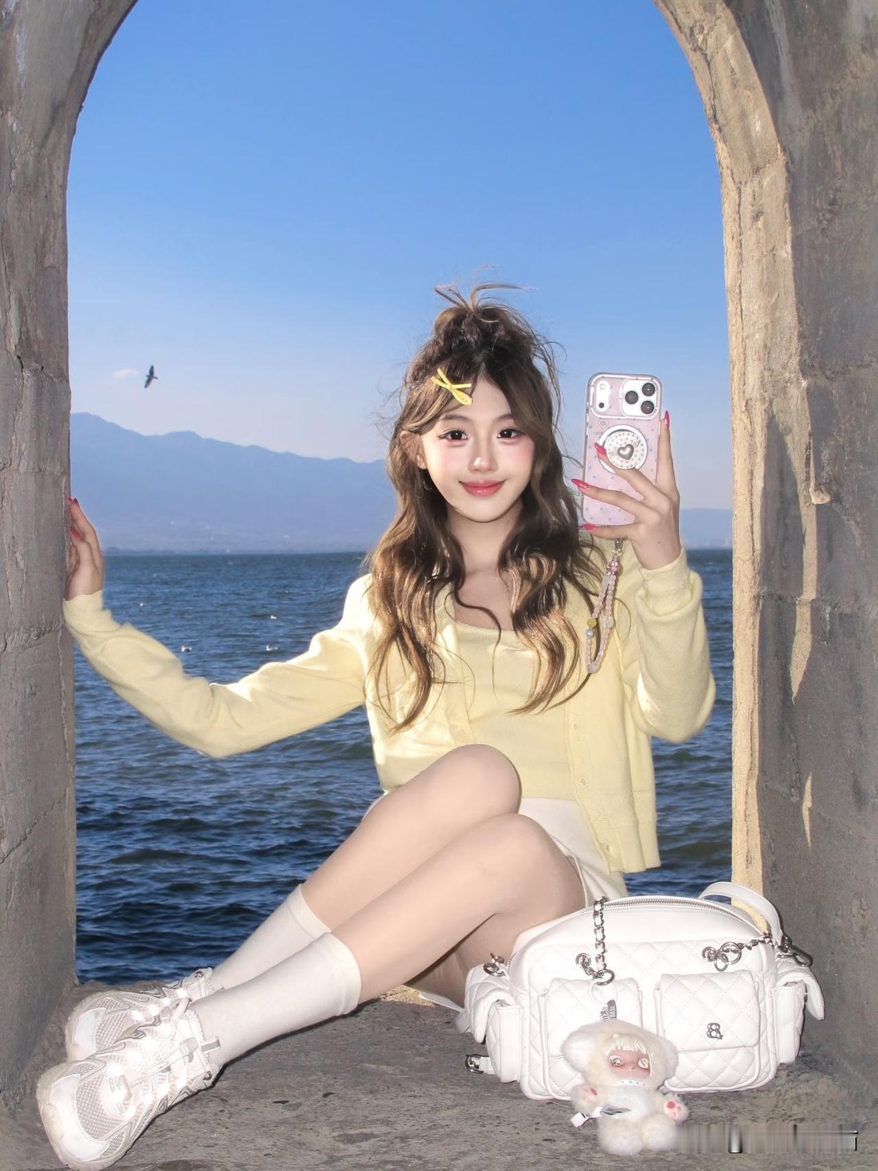 秋末户外摄影作品赏析,一身白色穿搭风,清纯可爱青春靓丽好看的女孩都长啥样的什么