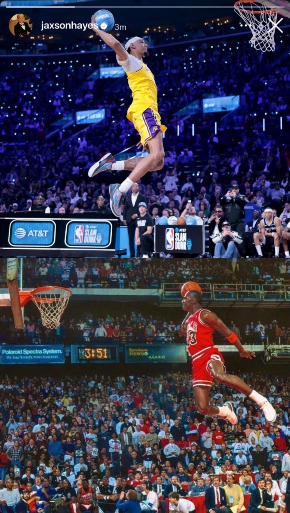 唐纳德·特朗普谈NBA全明星周末: “真是一场丢脸的赛事。想当年我们有迈克尔·乔丹,现在却只有一群无名之辈。” 评论区: 特朗普是对的; 虽然我不喜欢他,但他说的很对; 我个人认为也是的,尤其是扣篮大赛! 图3是海斯在社媒上发的和乔丹罚球线扣篮合拍图[捂脸][捂脸][不看][不看] 真的是,只要自己不尴尬,尴尬的就是别人[大笑][大笑]