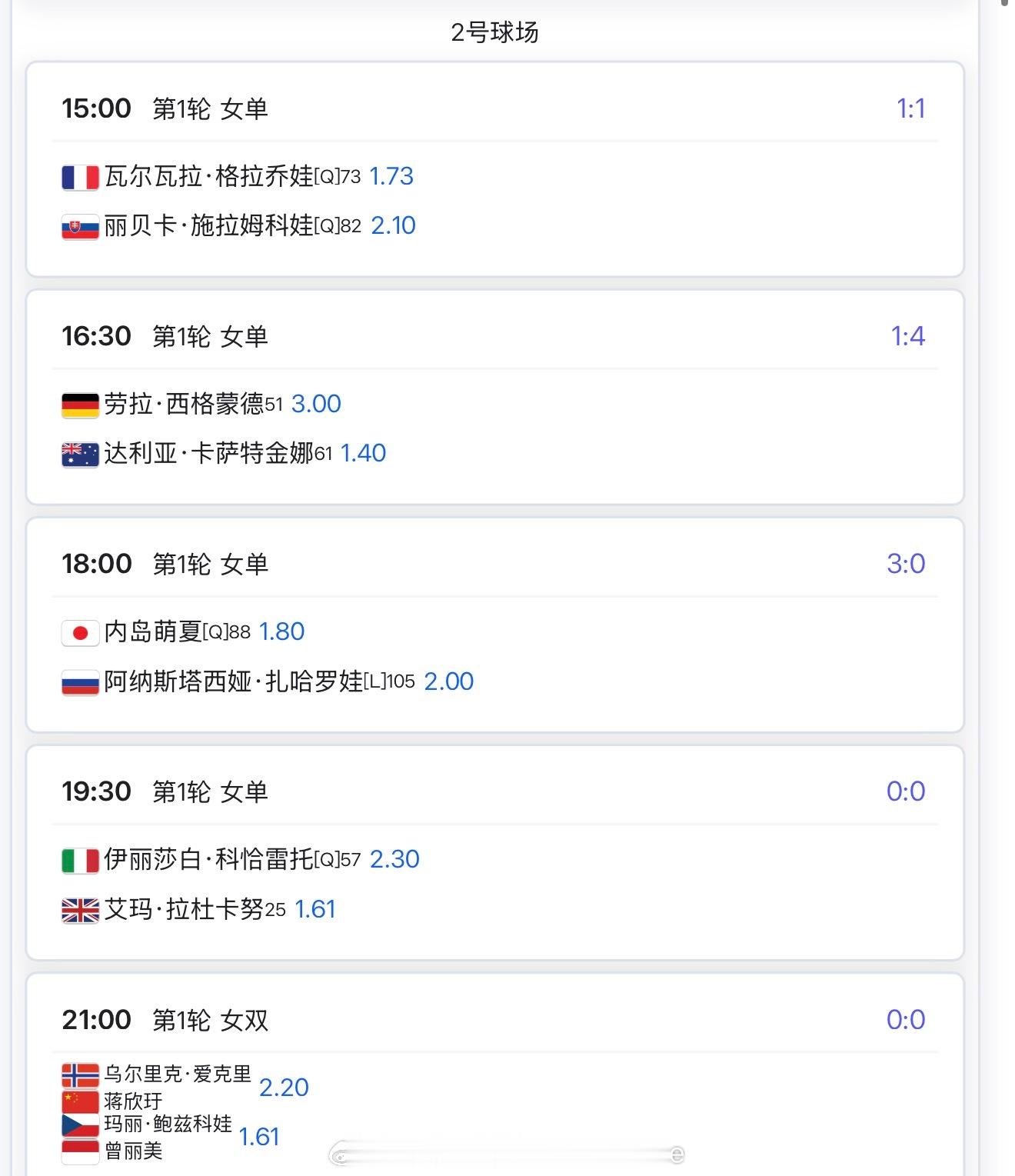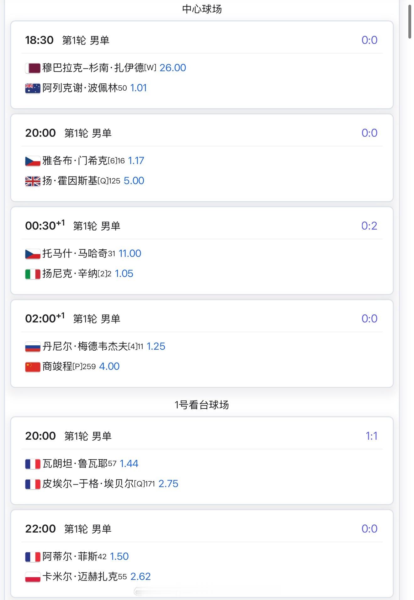 【今日比赛赛程+直播赛程】2:00商竣程vs梅德韦杰夫(不直播)