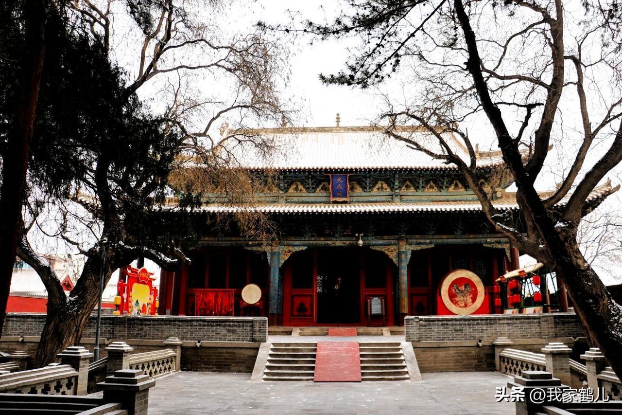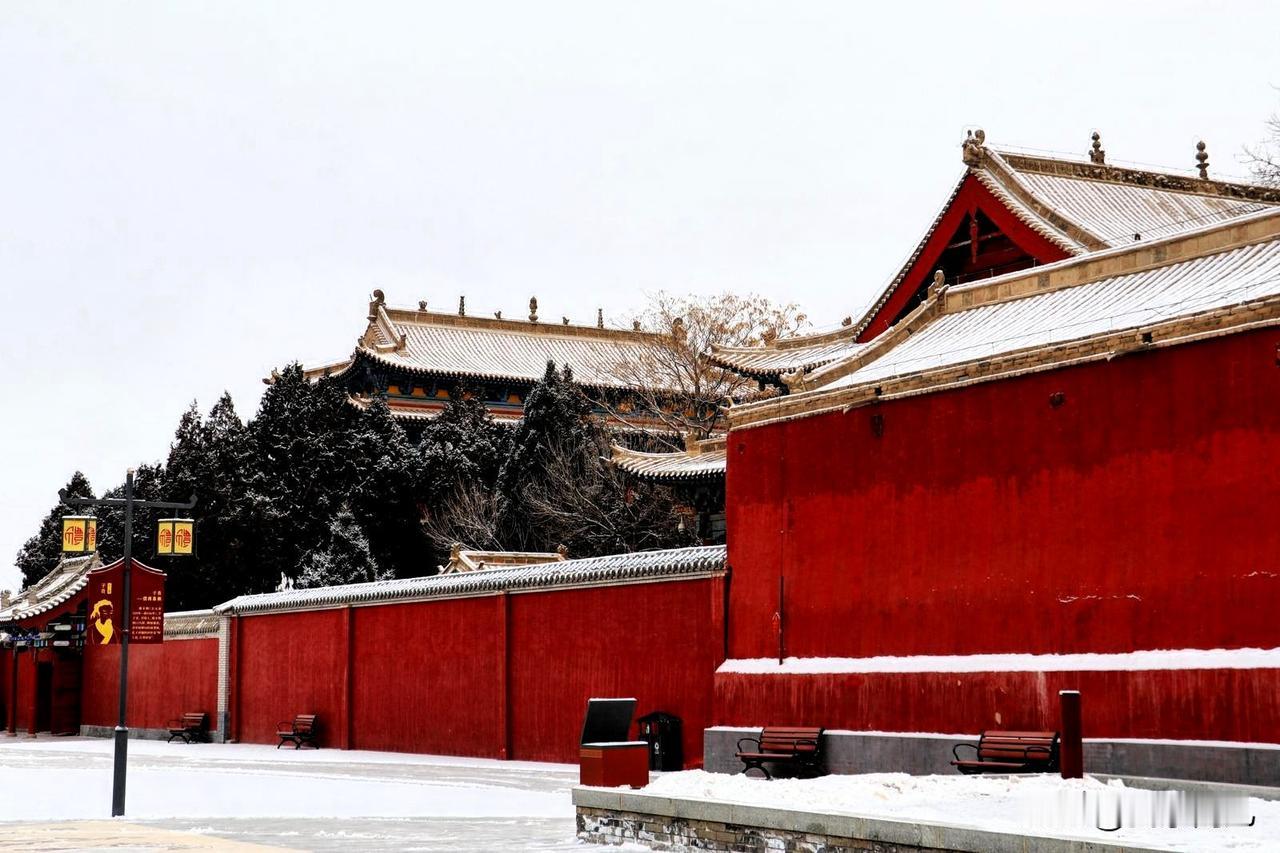 甘肃武威[烟花][烟花] 雪落文庙, 朱红宫墙覆薄银, 飞檐斗拱凝霜玉, 古建雅