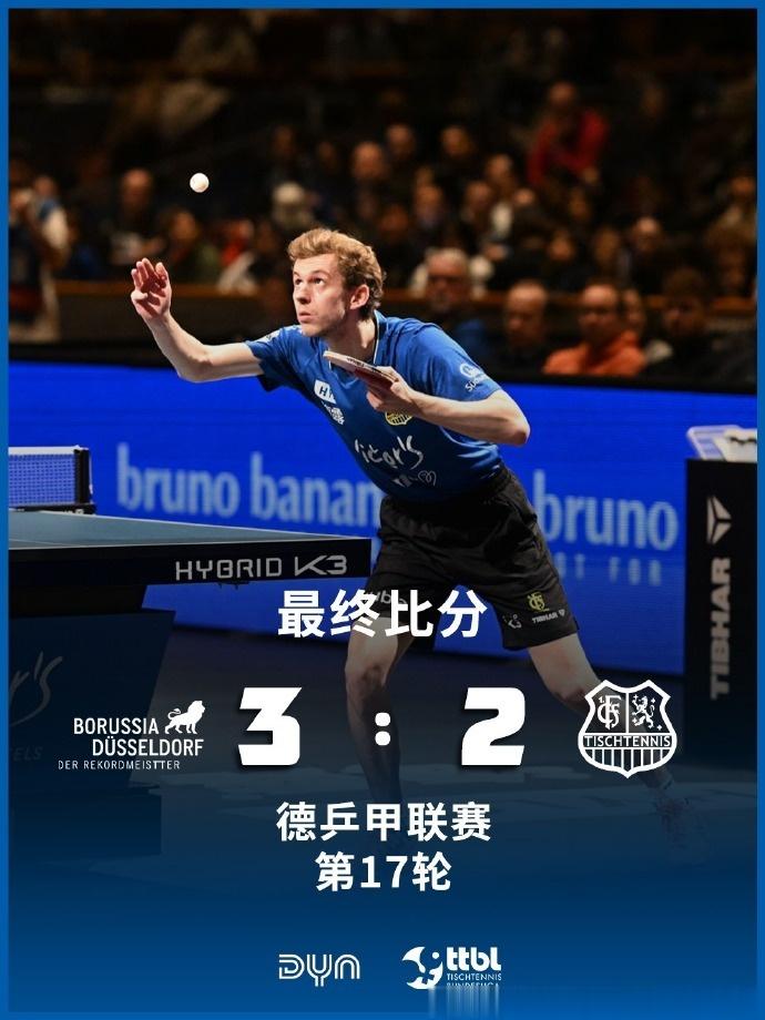 直播吧2月16日讯德国乒乓球甲级联赛第17轮,萨尔布吕肯2-3被杜塞尔多夫逆转。樊振东首盘出战单打击败贾哈,但在决胜盘的双打中不敌邱党组合。本场比赛过后,萨尔布吕肯依旧稳居联赛第三,接下来球队将迎来四周的间歇期。