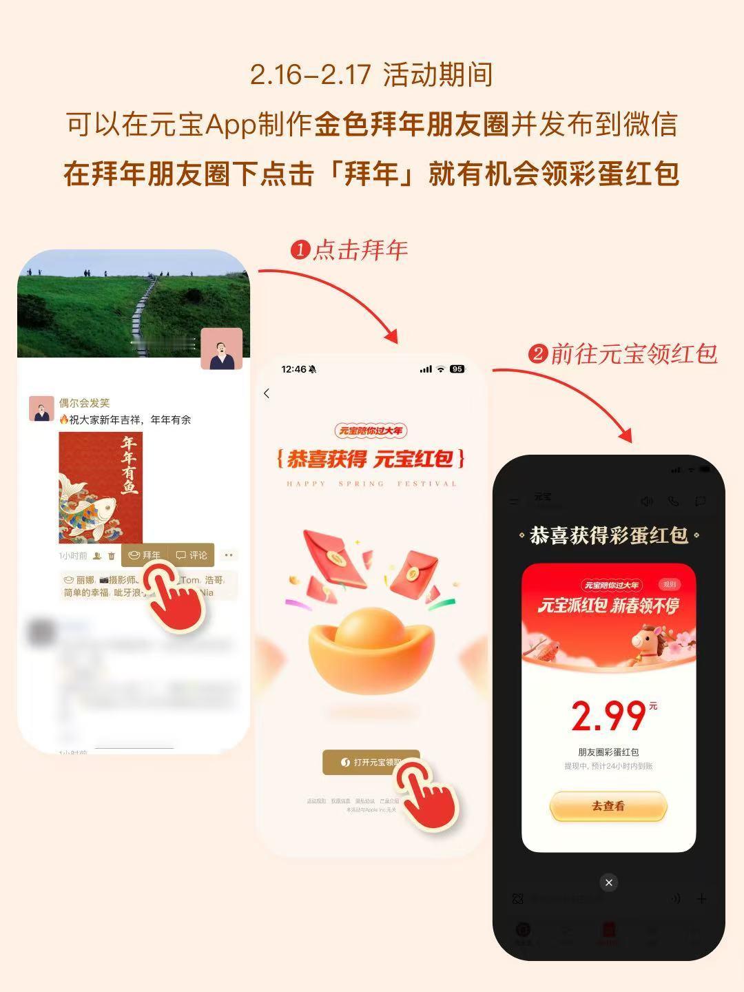 金色朋友圈怎么弄接接接,这个真得接了。我试了一下,在拜年朋友圈下拜年还有掉落,真没想到过年第一个拜年🧧是在朋友圈领的