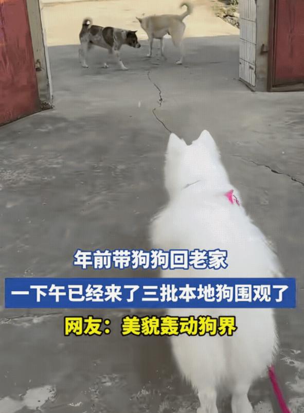 “笑不活了!”安徽,一女子带狗狗回老家过年,不料,因狗狗长得太漂亮导致村里其他狗狗都过来围观,女子既害羞又尴尬,称:“带狗狗回来才半天,家门口已经来了三拨土狗了!”网友:狗狗也看颜值吗? 安微的一座村庄里,一抹突兀的“城市雪白”硬生生撕开了乡村冬日的灰土色调。这不是在写景,而是圣女士的一场归乡“遭遇战”。今年春节来得早,加上父母那头催得紧,圣女士索性提前收了工,一脚油门踩回了老家。 车后座上那只名叫萨摩耶的“乘客”,是她无论如何不敢独留出租屋的宝贝疙瘩。若是把它扔在城里,没人喂食怕是得饿出个好歹。可谁能想到,这出于责任感的随行决定,竟意外激活了整个村庄的生物雷达。 车子熄火还没半天,引擎盖的余温甚至都没散尽,院门口就已经热闹得不像话了。原本冷清的门廊,莫名其妙聚集了至少三拨“不速之客”。 这哪里是普通的溜达?分明是一张无形的“情报网”在村里的土狗圈层迅速铺开——村头那家,来了个没见过的“洋气货”。这些本地土狗的表现,实在耐人寻味。 它们没有像看家护院时那样狂吠,反而一个个夹着尾巴,在那道看不见的门槛外徘徊。那种姿态,说是“围而不进”最为贴切。眼神里写满了怯懦,身体却又诚实地不想离开。一旦圣女士这“人类护法”稍微靠近,它们便如同触电般往旁边闪躲,那种羞涩与渴望交织的微表情,简直比戏剧还精彩。 起初,圣女士的判断完全就在“春节逻辑”里打转。她寻思着,这都腊月里了,家里早早备下了年货,灶台上炖肉的香气那是藏不住的。这帮小家伙大概是闻着肉味儿,想来讨一口残羹冷炙。这想法合情合理,毕竟在农村,狗鼻子追着肉香走是天经地义。 但很快,她就发现这逻辑链条断了。那几双乌溜溜的狗眼,压根儿没往厨房飘,而是死死锁在那只雪白、匀称的萨摩耶身上。 随着距离拉近,有的土狗甚至毫不掩饰地流出了哈喇子,鼻翼抽动,那架势分明是在捕捉空气中弥漫的某种特殊费洛蒙。 甚至有两只胆大的,趁着圣女士不注意,试图凑近萨摩耶的身侧,鼻头在那雪白的毛发间疯狂嗅探。这一刻,真相彻底反转。这哪里是“求生存”的觅食局?这分明是一场关于“繁衍与审美”的求偶局。 圣女士那只被精心呵护、毛发蓬松的雌性萨摩耶,在这些整日灰头土脸的本地土狗眼里,大概就是天降的“白雪公主”,是它们狗生中从未见过的“顶级颜值”。反应过来后,圣女士手里的动作那是相当利索。 一根竹棍瞬间抄在手里,成了横亘在城乡宠物阶层之间的一道物理防线。这一棍子下去,打散的是土狗们的“非分之想”,守护的是自家爱宠的“清白”。 看着被竹棍驱散、一步三回头的土狗群,再回头看看自家那只一脸懵懂、甚至还想凑上去跟“新朋友”玩耍的傻白甜,这画面的荒诞感瞬间拉满。 这事儿被传到网上后,舆论场的反应比那几拨土狗还热闹。有人戏称这是“癞蛤蟆想吃天鹅肉”的现实版演绎,也有人一针见血地指出:原来在这个看脸的世界,连狗都逃不过“颜值正义”的审判。 更有一帮“生物学卫士”隔空喊话:棍子握紧点,这要是真让哪只土狗“得逞”了,明年窝里出一堆黑白花的“串串”,那可就真是欲哭无泪了。 这场发生在2026年春节前夕的乡村围观,不过是两种截然不同的生存状态——被圈养的精致与被放养的野性,在一次偶然交汇中碰撞出的黑色幽默罢了。