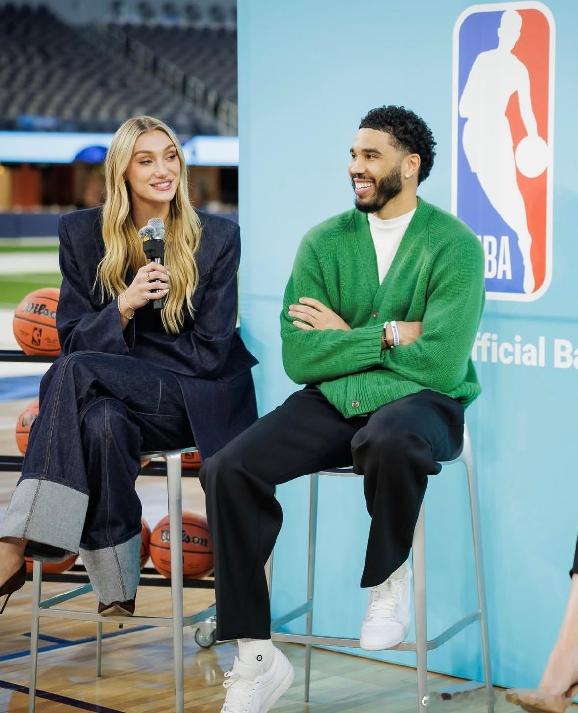杰森·塔图姆NBA全明星周末也挺忙碌的!Deuce爹有不少活动出席,这个是和库里的干妹妹、WNBA球星卡梅隆·布林克一起出席VIP款待见面会和访谈!塔图姆的穿搭是真让人看的舒服啊😌