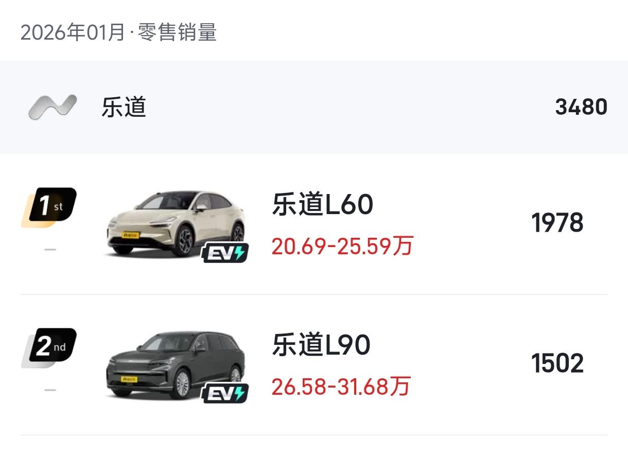 乐道L90,销量崩的有点厉害,是产能让给了蔚来ES8吗? 1月份,乐道L90卖了1502辆,相对于2025年12月的4105辆,11月的5970辆,10月的11722辆,销量起伏太大了。 乐道L90,性价比超级高,租电版17.98万,买断版26.58万,在大型SUV里面,这个价格极具竞争力。 随着蔚来ES8的崛起,乐道L90逐渐走低,是产能让给了蔚来ES8吗? 还是销量被提前透支了? 以乐道L90的产品力,销量不应该这么差。