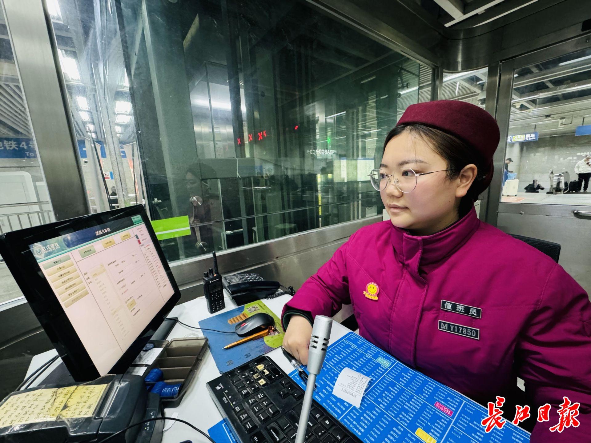 作为一名站务员,夏姝婷的工作涵盖了站台列车接发、专用通道引导以及票务服务等多个方面,每天的工作既忙碌又充实。“我喜欢在‘大站’工作。”她笑着分享道,“大站”通常指的是客流量大、换乘线路多的车站,工作节奏紧凑而富有挑战性。特别是在像武昌火车站这样的大型综合交通枢纽,春运期间更是需要全身心投入,几乎没有停歇的时刻。