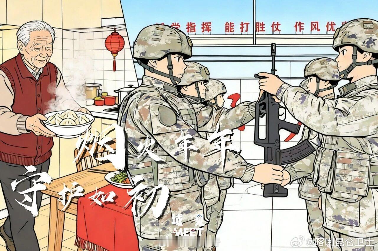 【以青春之名,赴家国之约|AI定格边防战士春节团圆照】当除夕的团圆饭热气升腾,当新年的钟声划破夜空。有一群最可爱的人,正巡逻在祖国的边境线。今年春节,我们用AI把他们坚守战位的身影,与远方家人的牵挂,定格成一张特殊的团圆照。戳↓致敬!春节AI合拍 春节摄影大赛 (素材由提供)
