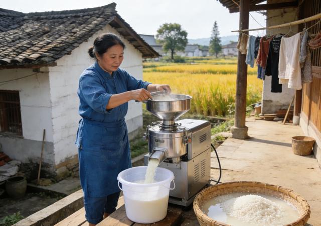先天晚上浸泡,第二天磨成浆。磨浆要有耐心,一人推磨,一人喂,只能少不能多。农村里一般是男人推磨,女人喂。有次隔壁马家磨浆,男人有些不耐烦了,女人没办法,几倍几倍地喂,磨出来的浆很粗糙,搅出来的是米糊糊,无法成型。