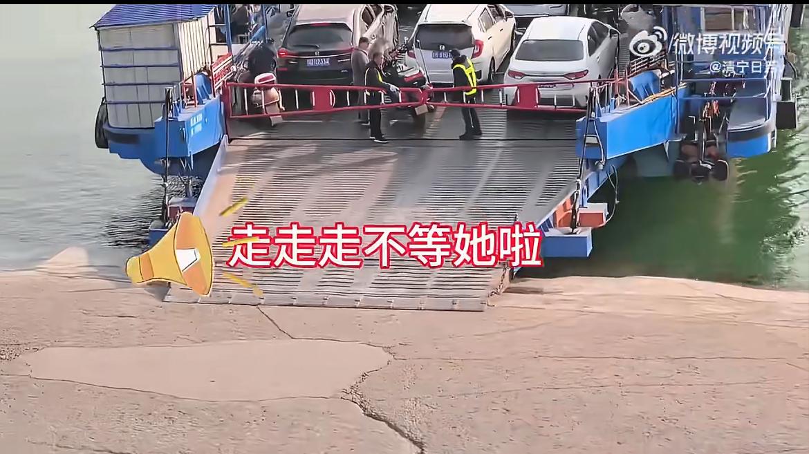 一家三口过轮渡,船老大一再催促船要开了,他们依然我行我素,慢悠悠,像公园散步一样