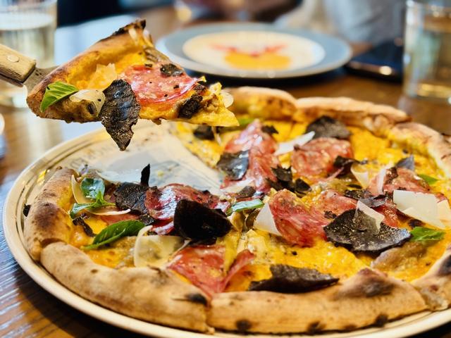 “这是我与主厨团队共同研发的节日菜单。”萨姆十分自豪地为记者演示马年限定披萨的制作过程:明黄的烤南瓜奶油为底,松露萨拉米香肠打头阵,云南黑松露、牛肝菌点缀其间,抄起专用的铲子将披萨胚子置于特制烤炉,一分钟后,浓醇的奶香与菌香就飘满整个厨房。“它寓意力量与丰盛。”萨姆说。