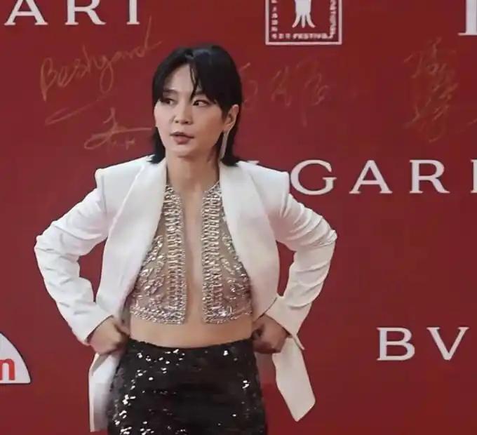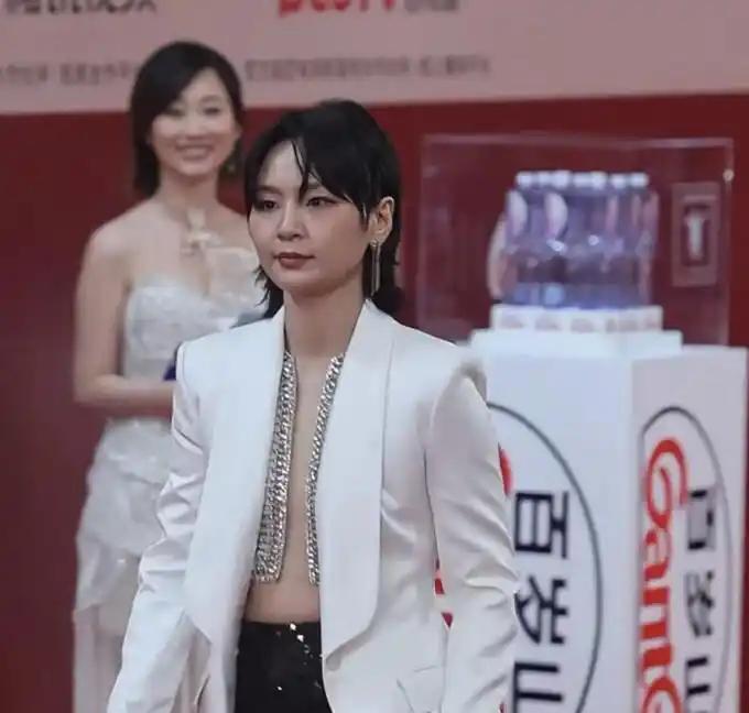 姚晨的火焰礼服真的太不能遮肉了,溜肩还显手臂粗。