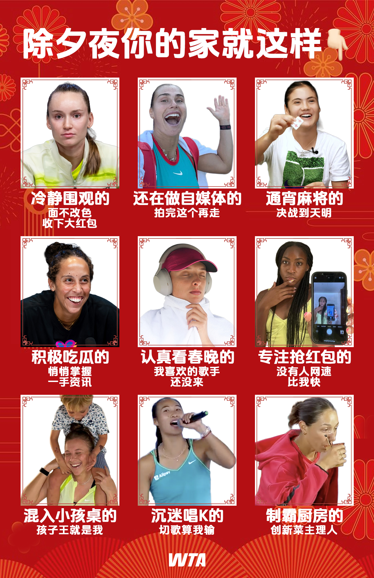 当WTA球员和你一起过除夕…😎无论什么状态,无论和谁在一起,都祝你有一个美好的