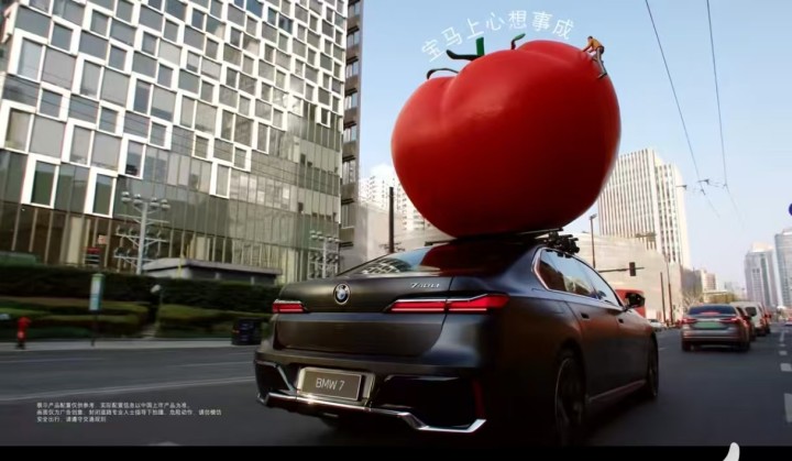 1月26日,宝马发布年度贺岁视频,头戴西红柿、苹果、双吸管、树枝和喜鹊、冰糖葫芦的宝马车在街头巡游,分别寓意“宝,马上上市”“宝,马上平安”“宝,马上成双成对”“宝,马上有喜”“宝,马上有福”“宝,马上步步高升”,祝福大家马年好运全开,所有期待都能马上成真,把汉语的谐音和中国文化的寓意结合得恰到好处。