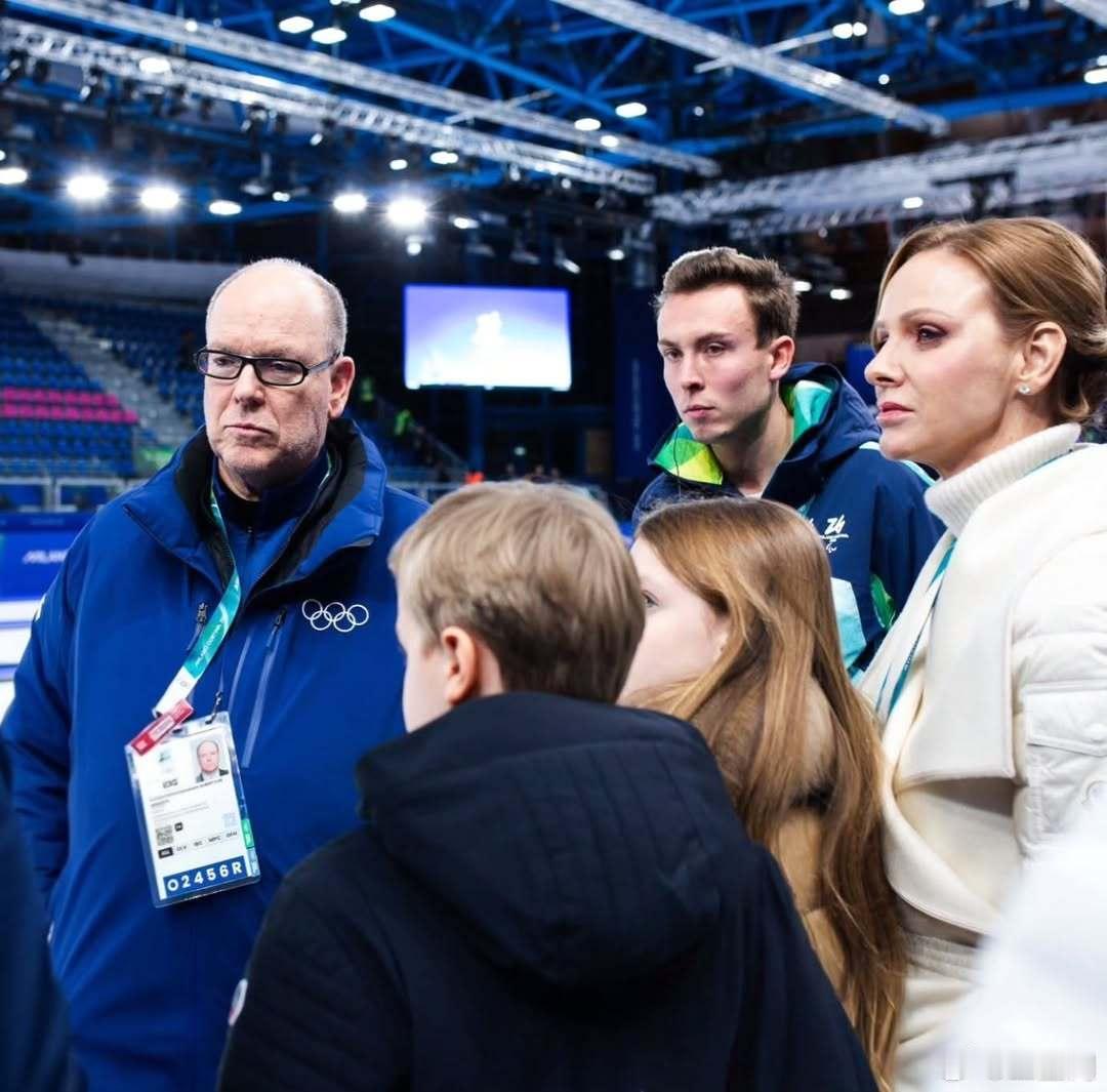 摩纳哥王室 🇲🇨2月14日,阿尔贝亲王、夏琳王妃、雅克王储、加布里拉公主出席冬奥会观看意大利对中国、英格兰对加拿大、瑞士对日本的冰壶🥌比赛。世界各国王室