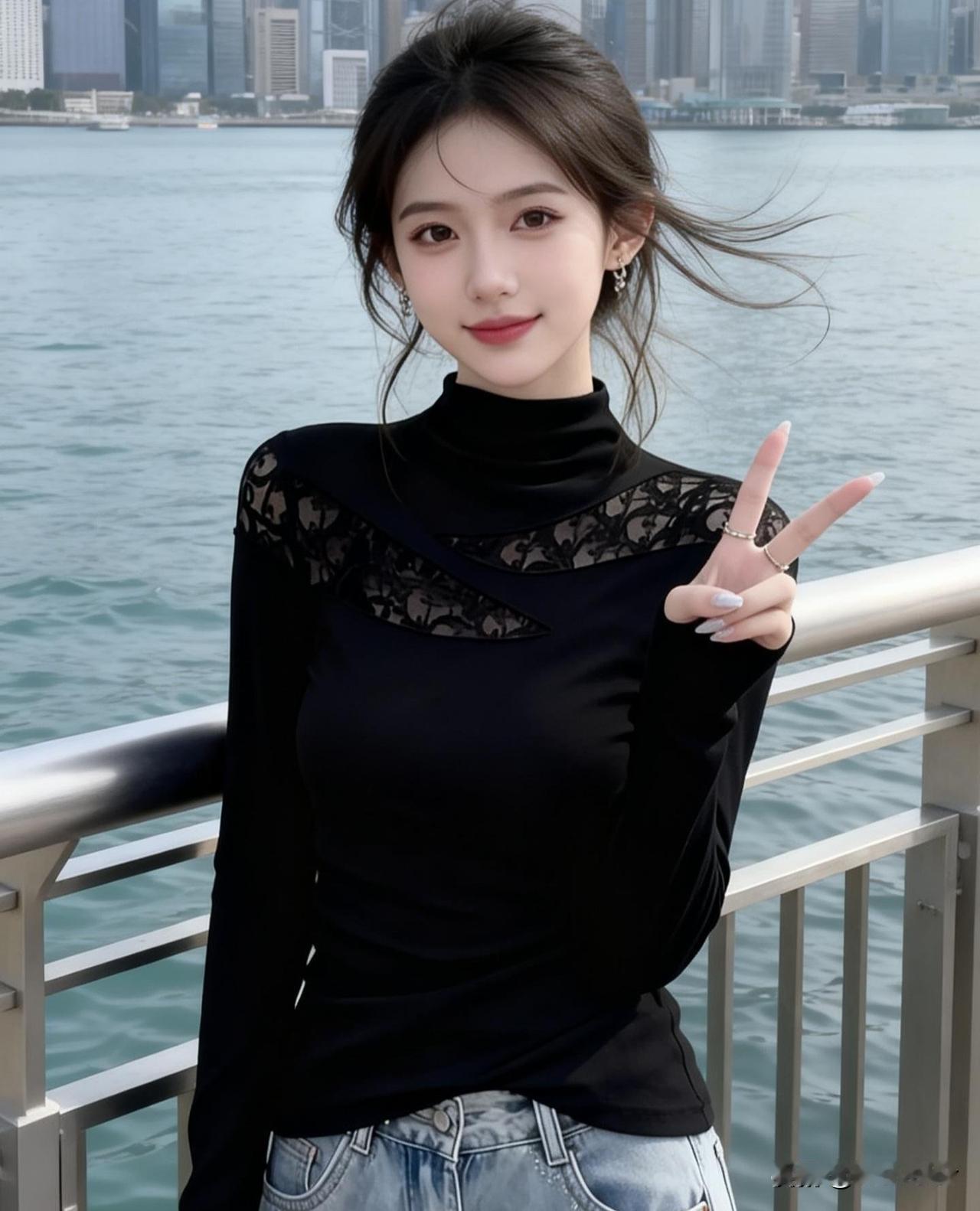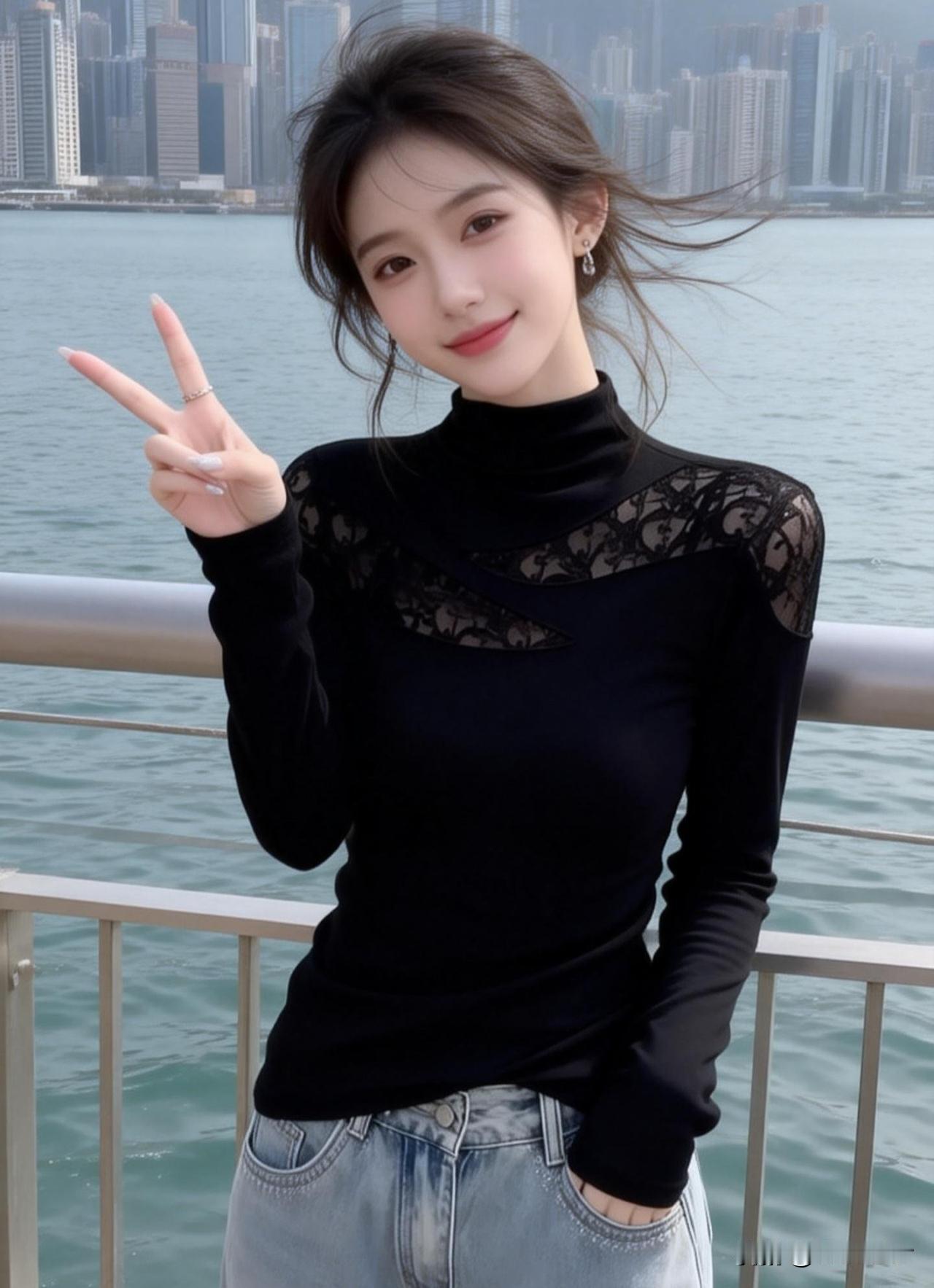 海风轻拂,微笑比心,元气少女游港记🌊💙