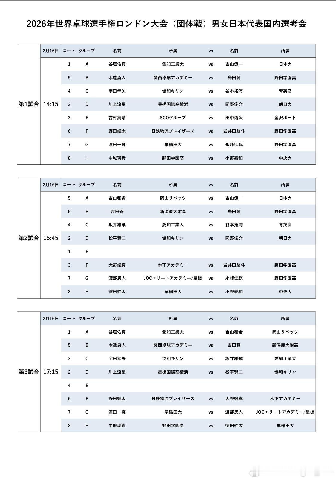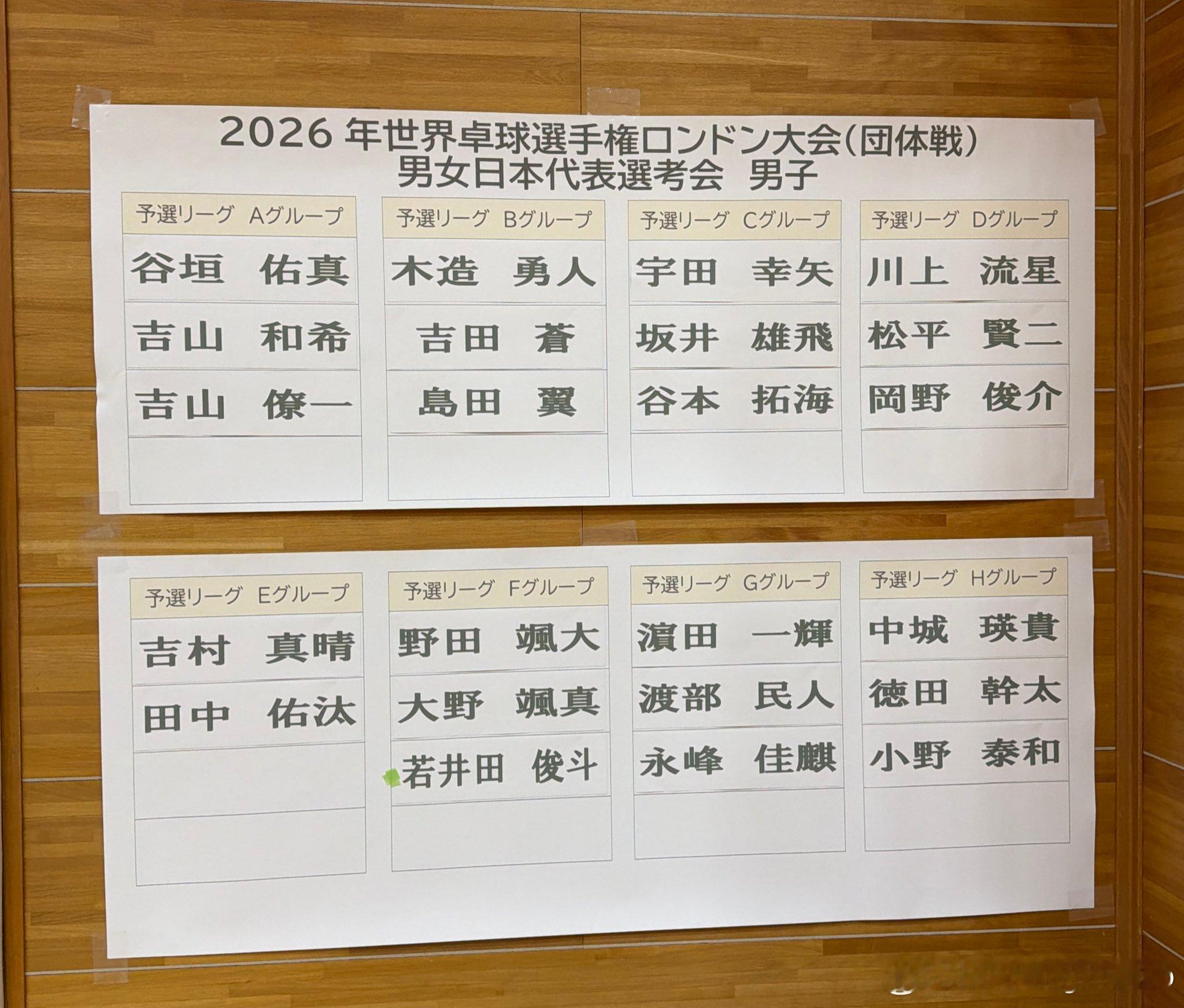 2026年世界乒乓球锦标赛伦敦大会(团体赛)男女日本代表国内选考会分组名单 比赛时间表(吉山兄弟在同一组 平野美宇因为昨天进了球挑决赛应该是来不及参加选考所以退了