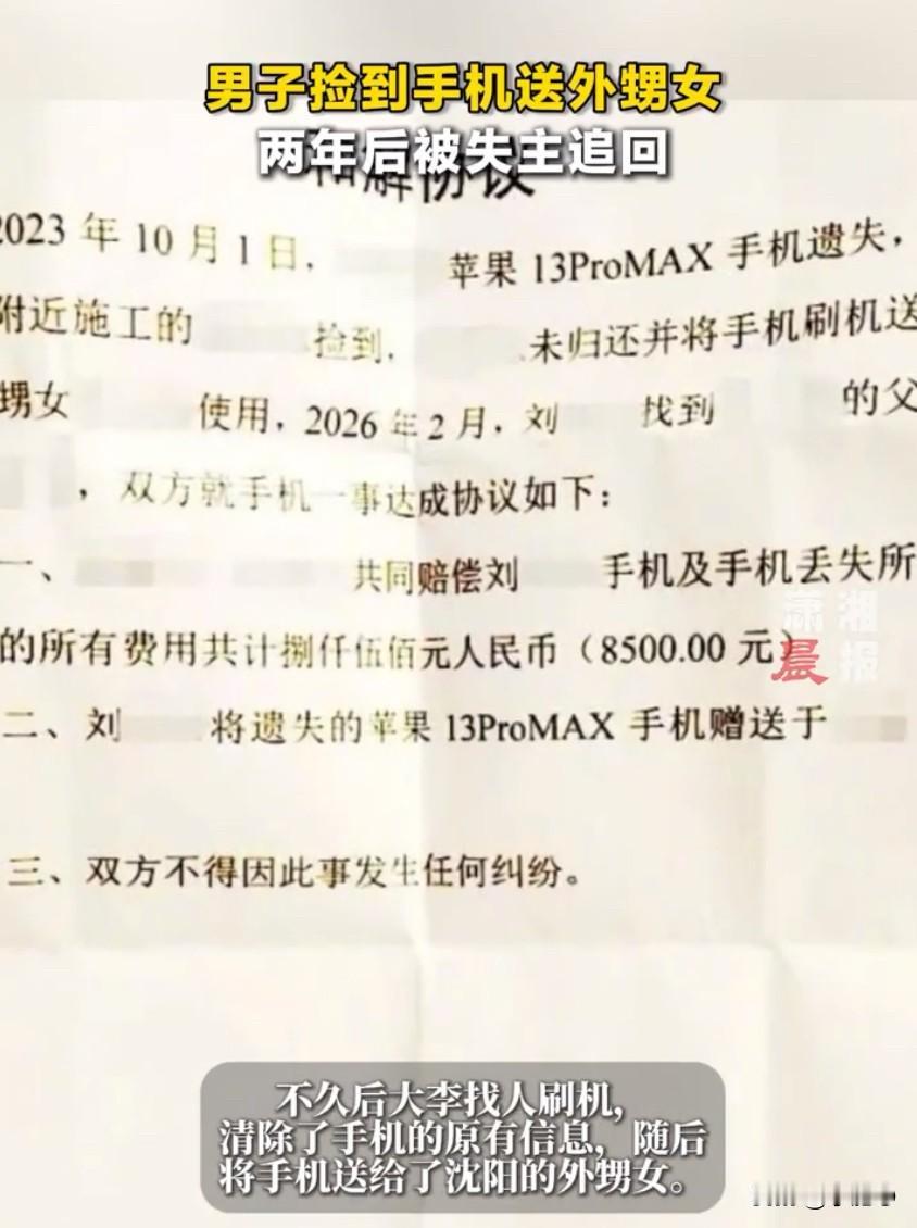 大庆女孩小刘外出购物时,因为路段施工只能步行回家,途中不小心把手机遗失在路上,等她发现后立刻原路返回寻找,反复找了好几遍都没有看到手机的踪影,这部手机里存着大量对她很重要的个人信息和资料,她十分着急,第一时间选择报警求助。报警之后小刘也没有放弃寻找,她一直通过手机官方平台查询设备状态,一开始显示手机没有被激活,加上当时她正处于备考的关键阶段,只能暂时把这件事放在一边,默默等待设备出现新的动态。在此后的很长一段时间里,小刘每隔一段时间就会登录官网查看,没有中断过对这部手机的追踪,她始终抱着一丝希望,觉得能有找回的可能。就在大家都以为这部手机再也找不回来的时候,设备状态突然更新,显示这部丢失已久的手机被人激活,而且使用地点远在沈阳,小刘立刻把这条关键线索反馈给警方,警方接到信息后高度重视,马上展开调查核实,经过系统比对和信息确认,确定在沈阳被使用的这部手机,正是小刘之前遗失的那一台。为了弄清事情真相,民警跨省前往沈阳找到当前使用手机的人,一番询问之后,整件事的来龙去脉终于清晰,原来手机当年被一名修路工人捡到,对方没有选择寻找失主或者上交,而是直接找人把手机刷机清空了所有原始数据,之后当作礼物送给了自己在沈阳的外甥女。捡到手机的人以为刷机之后就能神不知鬼不觉地使用,没想到失主坚持追踪了这么久,最终还是被找到,面对确凿的证据,对方也承认了整个过程,愿意承担相应的责任。经过警方的协调,双方达成一致处理方案,由捡到手机的人及其家属向小刘支付相应的经济补偿,其中包含手机本身的价值、被删除资料的损失以及小刘这两年寻找手机产生的相关费用,事情得到妥善解决。这件事也让很多人感慨,现在的电子设备定位与追踪功能越来越完善,捡到他人财物不归还,甚至擅自处理使用,不仅违背道德,还要承担相应的法律责任与经济损失,无论过了多久,该承担的后果都躲不掉。 来源:潇湘晨报