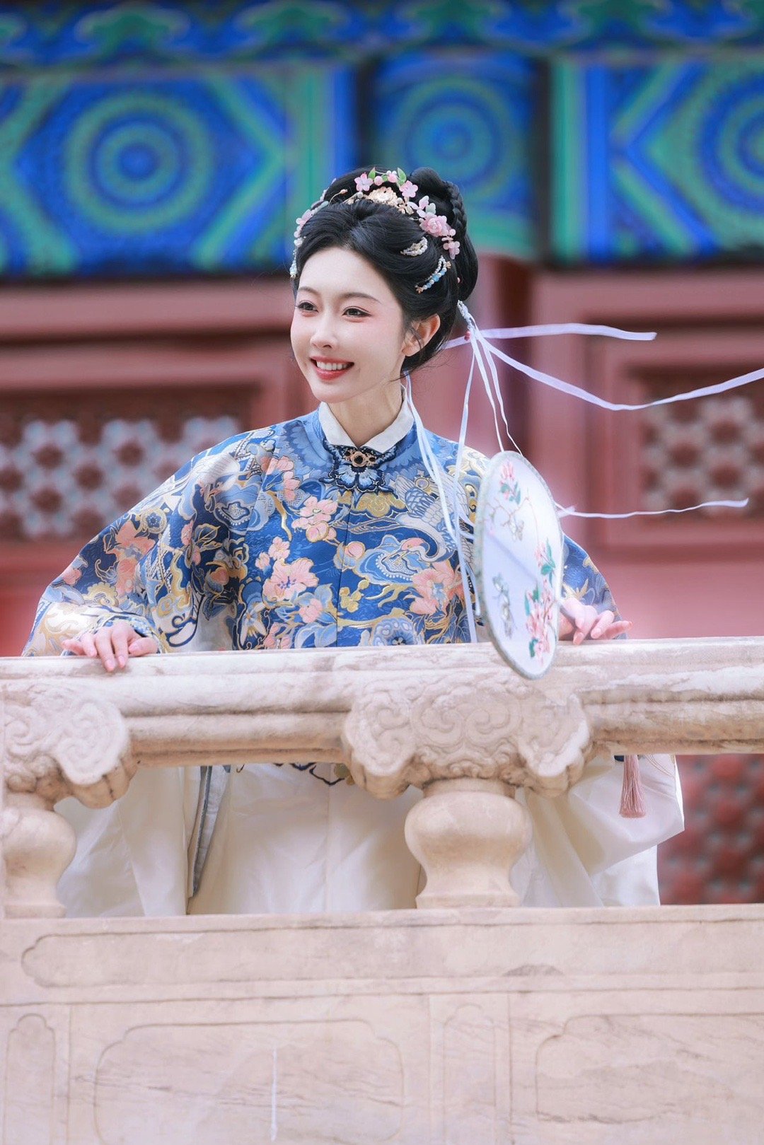 宣璐明制汉服美成啥了 宣璐这组明制汉服造型杀疯了!素白披风配蓝金刺绣,毛领温温柔柔托着下巴,眉眼间全是沉静。红墙背景一衬,端庄雅致全出来了。这种越品越有味道的古典美,真的看不够!
