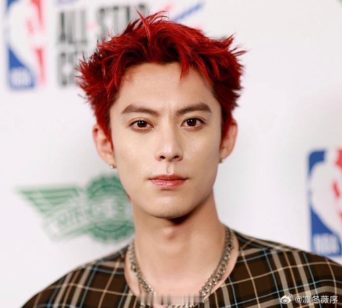 王鹤棣中国红发型全明星赛场上的中国红全明星赛场因这抹中国红更亮眼!王鹤棣的红发型