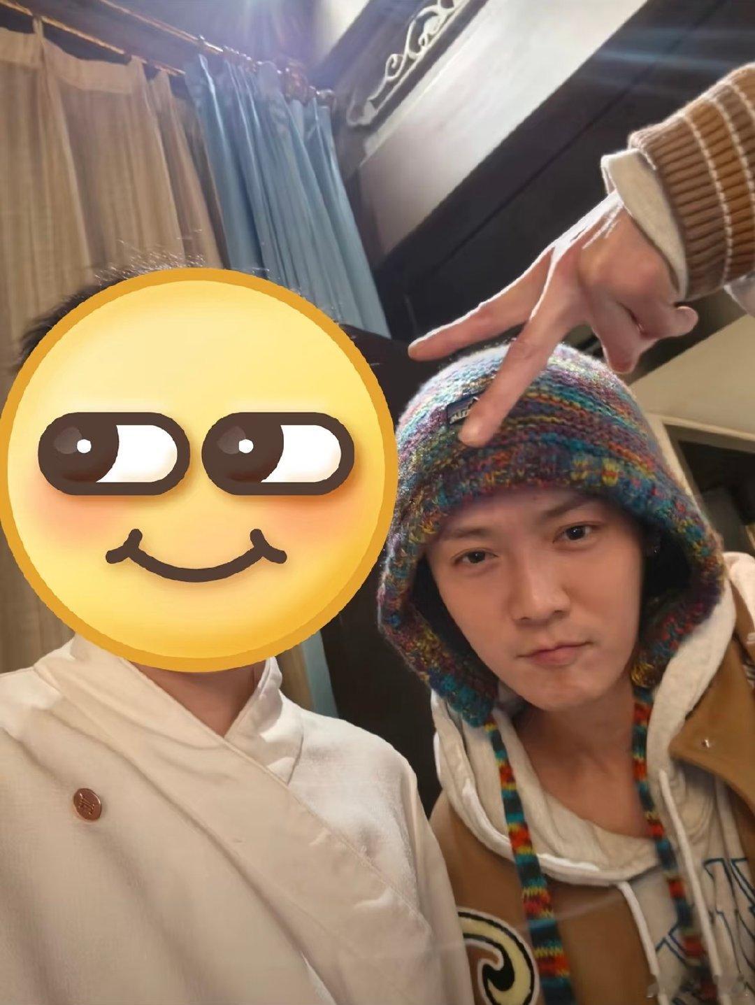 鹿晗最新素颜照 网友分享偶遇鹿晗合照,他戴着彩色毛线帽纯素颜出镜,皮肤状态超好,