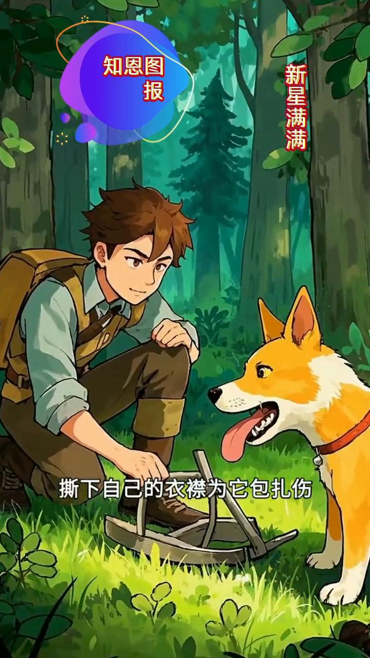 知恩图报。 我会先为你生成匹配故事的插图,再为你撰写这篇民间故事。 黄狗报恩。清朝光绪年间,岭南梧州城外有个破落的小村庄,村里住着个名叫阿福的孤儿。阿福靠上山采草药换些碎银糊口,二十岁了还住着漏风的土坯房,一日三餐都要靠老天爷赏饭。 入秋的一日,阿福冒着大雨进山采金线莲,在山涧旁发现了一只后腿夹在捕兽夹里的大黄狗。那狗浑身浴血,却依旧警惕地低吼着,一双琥珀色的眼睛里满是倔强。阿福心善,不顾狗的威胁,小心翼翼撬开捕兽夹,撕下自己的衣襟为它包扎伤口,又把仅剩的半个麦饼喂给了它。大黄狗吃完麦饼,舔了舔阿福的手背,一瘸一拐地消失在了密林里。 日子一天天过去,阿福渐渐忘了这件事。这年冬天,梧州爆发瘟疫,药价飞涨。阿福进山采药时不慎失足摔下陡坡,断了右腿,只能躺在床上等死。就在他水米不进、只剩一口气时,大黄狗竟叼着一株百年老山参闯进了他的屋子。阿福又惊又喜,靠着山参续命,右腿也慢慢好转。 开春时,村里来了一伙强盗,烧杀抢掠,无恶不作。阿福拖着还未痊愈的右腿躲在床底,眼看就要被强盗发现,大黄狗突然冲了出来,死死咬住为首强盗的喉咙。强盗们恼羞成怒,乱刀砍向大黄狗。大黄狗倒在血泊里,却依旧死死不肯松口。官兵恰好赶到,剿灭了强盗。阿福抱着大黄狗的尸体哭到晕厥。 后来,阿福用卖山参剩下的钱在村里开了间药铺,免费为穷人看病。他在药铺后院为大黄狗立了个衣冠冢,逢年过节都会摆上麦饼祭拜。有人问他为何对一只狗如此伤心?阿福总是望着冢前的黄狗石像,看到它救过我的命,我便要护它的魂。