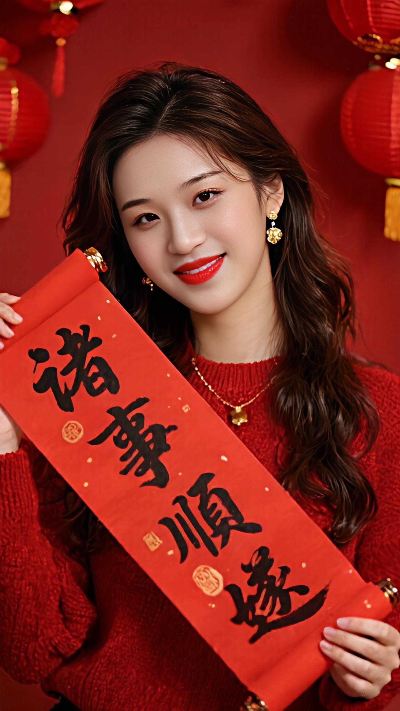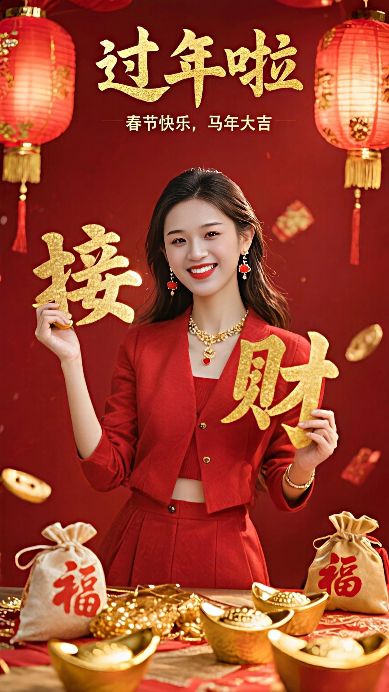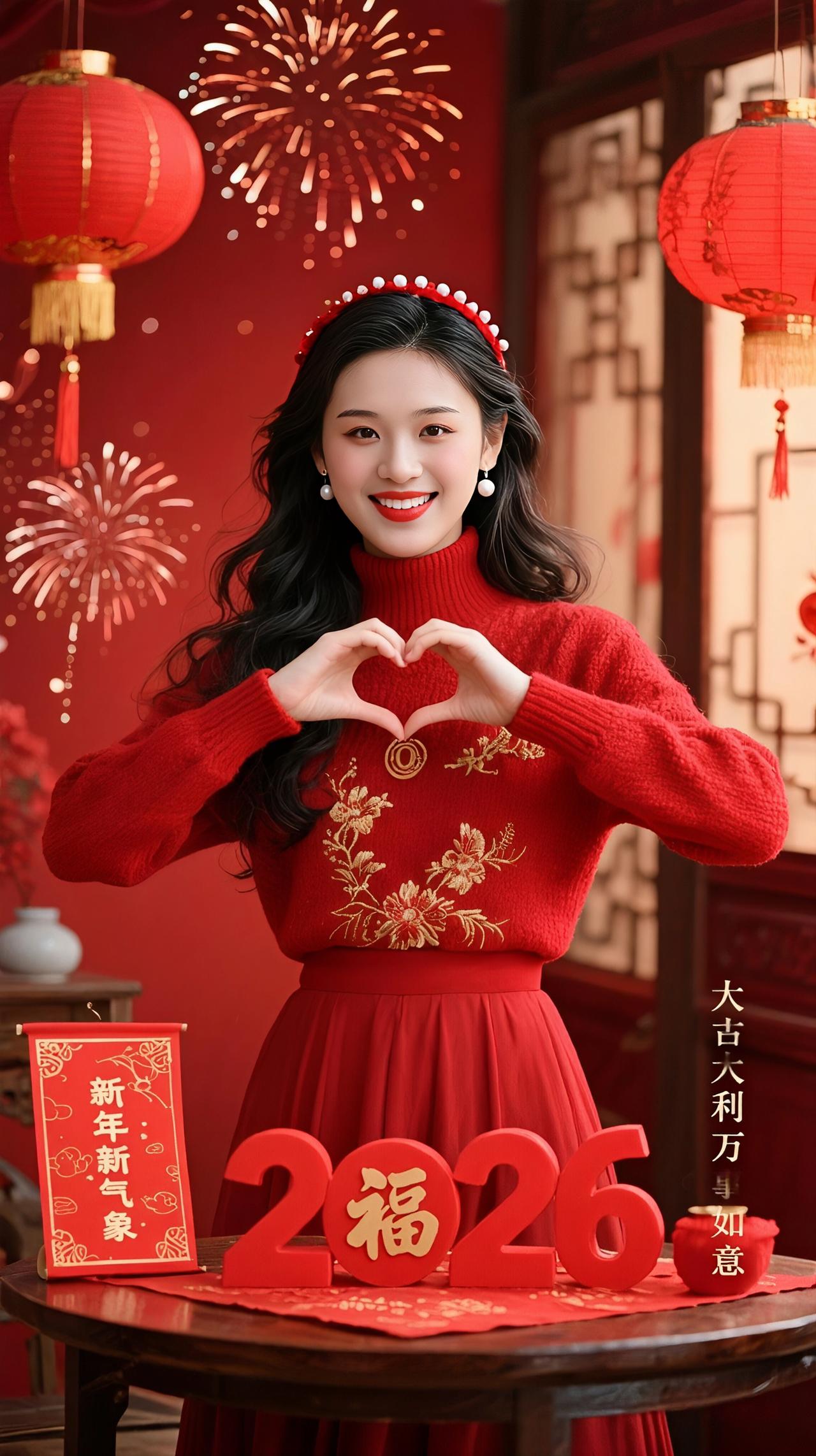 新年喜庆P图大赏 红妆一笑醉流年,漫卷云舒许大千。 金马扬蹄开泰运,春风送暖入家筵。 且将新愿折成扇,岁岁安康福满船。 红衣胜火,笑靥如花。 手握清风,许你一世荣华。 2026,马到功成,万事胜意。 我把2026的期许, 折进这把红色的扇子里。 灯笼点亮了除夕的夜, 烟火升腾起来年的喜。 不必借光而行, 你本就是星辰。 愿这一年的风, 都为你而来, 愿这马年的路, 尽是坦途与花开。 红衣出镜,自带光芒。 除夕快乐,在这个热烈的年份,我们都要闪闪发光。