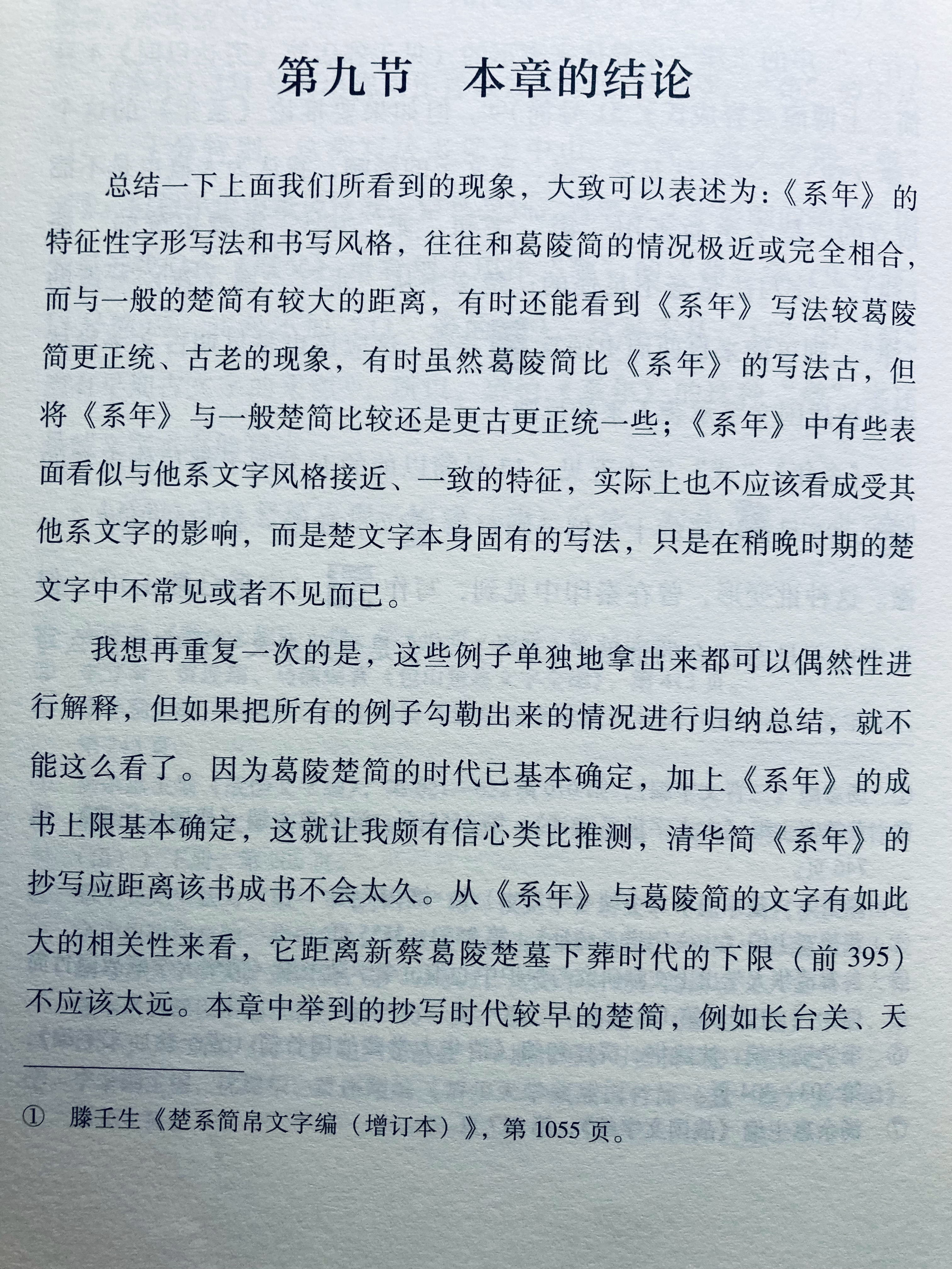埴轮书话 郭永秉通过对比字体和书写风格,发现清华简《系年》明显接近年代较早的新蔡葛陵简(不晚于公元前395年),而与公元前300年前后的那批楚简大宗(包括上博简、清华简书类、包山简、郭店简等)差异较大。他由此提出: