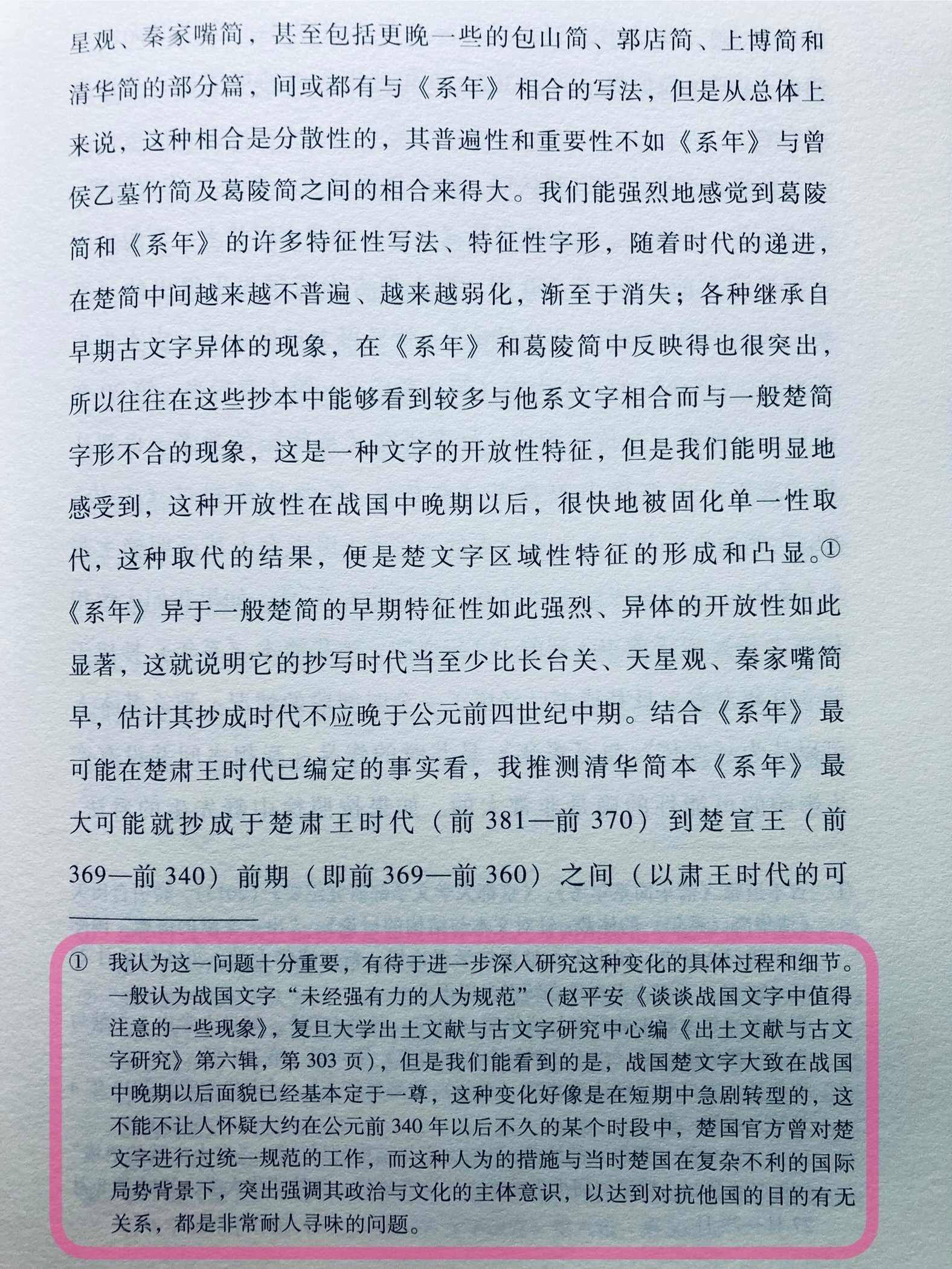 1️⃣约在公元前340年以后,楚国官方曾推动文字规范,造成该世纪末楚文字地域特征的形成和凸显。