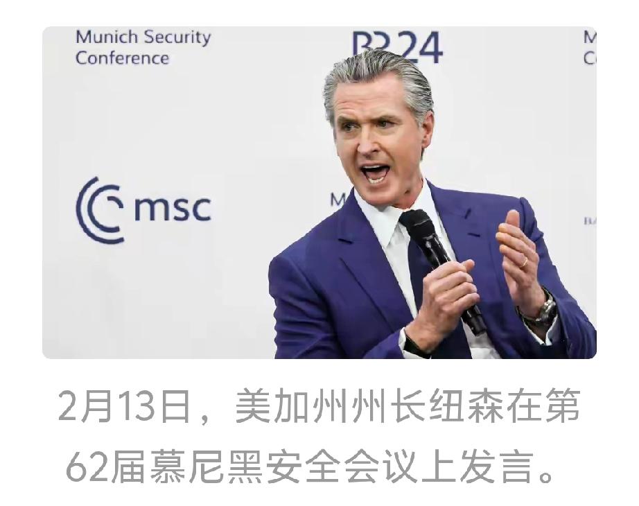美国加州州长纽森在慕尼黑安全会议上喊话欧洲领导人,让他们再忍忍,说特朗普三年后就会离开。这画面还挺有意思,感觉就像在给欧洲吃颗“定心丸”。 纽森和特朗普之间也有不少故事。特朗普老攻击纽森,还给他起“纽渣”这幼稚绰号。纽森也不客气,痛批特朗普政府,说美国在倒退,呼吁大家站出来阻止。这次他在会上这么说,一方面可能是为了安抚欧洲盟友,另一方面或许也有民主党人角逐2028年总统提名的考量。不过三年时间变数太多,特朗普到底会不会如他所说离开政治舞台,还真不好说。