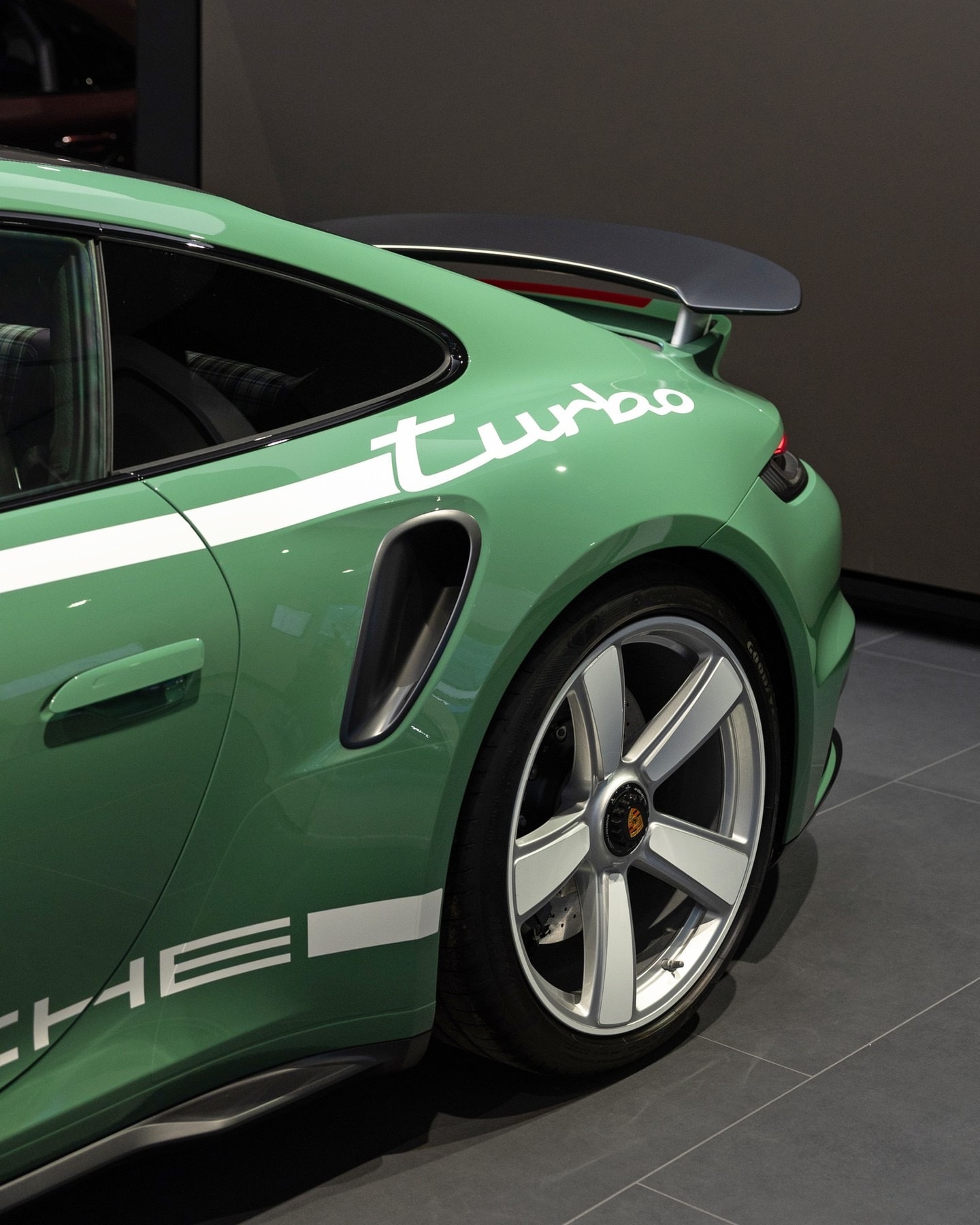 这款“涂鸦样品”Auratium Green 911 Turbo 50周年纪念版,最近在保时捷中心Guildford展出,以无可置疑的保时捷风格庆祝了涡轮增压卓越50周年。