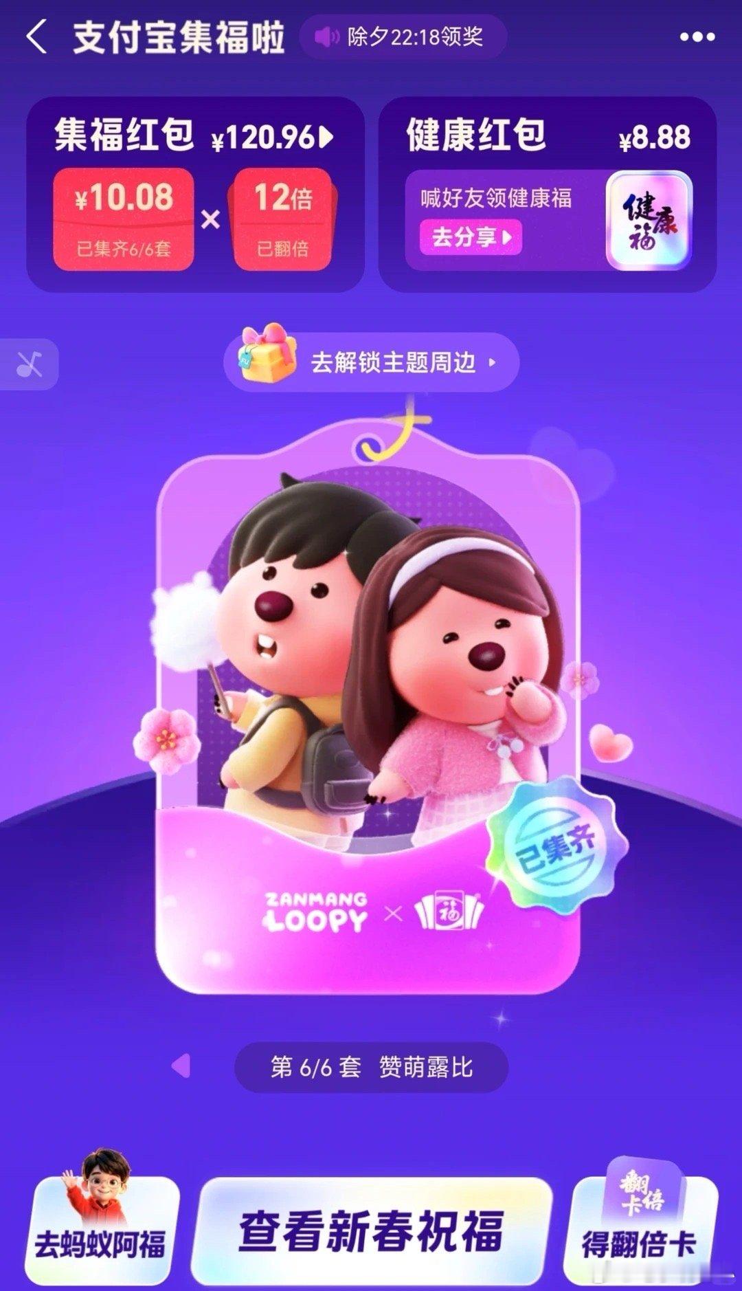 支付宝集福红包今晚22点18开奖支付宝集福啦 春晚正热闹,福卡别忘合!支付宝集福
