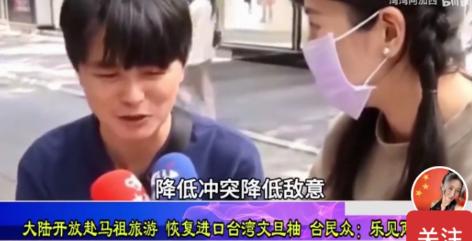 台湾中天记者在街头采访几位台湾的年轻人 记者问:“你们是不是希望上海人开通金门