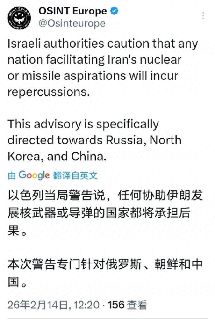 中国收到以色列警告,称若协助伊朗发展核武器,将面临灾难性后果 看到这条消息,很多人都会疑惑,一向对华态度相对平和的以色列,怎么会突然放出这么强硬的狠话?而且还直接点名中国,这背后绝对不是一时冲动,而是藏着多重算计和复杂的中东博弈。 首先得说清楚,以色列这次的警告,不是空穴来风,但也绝对算不上合理。熟悉中东局势的朋友都知道,以色列和伊朗就是天生的“死对头”,尤其是伊朗的核计划,在以色列眼里,就是悬在自己头顶的“达摩克利斯之剑”。毕竟以色列国土狭小,没有战略纵深,一旦伊朗真的拥有核武器,对它来说就是致命的威胁。 这一切的导火索,还要追溯到去年的“十二日战争”。当时伊朗向以色列发射了多轮弹道导弹和高超音速武器,一度把以色列引以为傲的“铁穹”和“箭”式反导系统逼到了饱和状态。虽然最后以色列反击,空袭了伊朗的多个核设施和导弹基地,但也付出了不小的代价,这种切身的威胁感,让以色列对伊朗的核计划和导弹能力更加警惕。 战争结束后,伊朗开始主动寻求外部技术支援,一方面和俄罗斯洽谈引进防空系统,另一方面也试图和中国在一些军民两用领域展开合作。比如导弹制导、推进剂配方这些技术,既能用在航天等和平领域,稍加改造也能用于弹道导弹。就是这一点,让以色列神经紧绷,甚至有点过度敏感,直接把矛头对准了中国。 以色列之所以敢这么强硬地警告中国,背后其实有三重心思。第一,就是预防性威慑,它想通过这种公开放狠话的方式,给所有可能帮助伊朗的国家划红线,告诉大家谁敢帮伊朗发展核能力和导弹技术,就是和以色列作对,就要承担后果。说白了,就是想提前堵住伊朗获取技术的渠道。 第二,就是想给美国“表忠心”,增加自己在美伊谈判中的筹码。最近美伊在阿曼重启了核谈判,但双方分歧很大,谈得并不顺利。以色列一直担心美国为了尽快达成协议,会在伊朗核问题上妥协,所以它故意对华示硬,就是想向美国证明,自己面临的威胁有多严重,敦促美国在谈判中保持强硬立场,不能松口。 第三,也是最关键的一点,以色列在应对“后美国主导时代”的安全不确定性。这些年美国的全球战略重心在转移,对中东的关注度和投入都在减少,包括以色列在内的美国盟友,都开始担心美国的安全承诺靠不住。所以以色列这次主动发声,就是想告诉全世界,在自己的核心生存问题上,它不会完全依赖大国协调,会自己动手维护安全。 但以色列这次显然是打错了算盘,它低估了中国的立场,也高估了自己的影响力。中国在伊朗核问题上的态度,一直以来都非常明确,也始终保持一致——我们坚决反对任何国家发展核武器,坚持通过政治外交手段和平解决伊朗核问题,反对动辄诉诸武力和非法制裁。 而且中国和伊朗的合作,从来都是在国际法和联合国安理会决议框架内进行的,都是合法的经贸和科技合作,从来没有协助过伊朗发展核武器,这一点中国外交部早就明确表态过。以色列不分青红皂白就发出警告,不仅无助于增进双方互信,反而会给中以关系添堵,也不利于中东地区的和平稳定。 再说了,以色列口中的“灾难性后果”,其实更多是口头威慑。中国作为联合国安理会常任理事国,又是负责任的大国,拥有足够的实力和底气维护自身的合法权益,以色列真的要采取实质性行动,显然要掂量掂量后果。更何况,单边警告和军事威胁,只会让伊朗更加坚定地寻求自我保护,反而会加剧中东的军备竞赛和冲突风险。 现在的中东局势本来就够乱了,美伊谈判陷入僵局,各方势力相互牵制。以色列与其靠放狠话施压,不如坐下来和各方好好沟通。毕竟,要解决伊朗核问题,靠威胁和制裁没用,只有通过平等对话,兼顾各方的合理关切,才能找到长久的解决方案。而中国,也会继续秉持客观公正的立场,推动伊朗核问题走向政治解决,为动荡的中东局势注入一丝稳定。