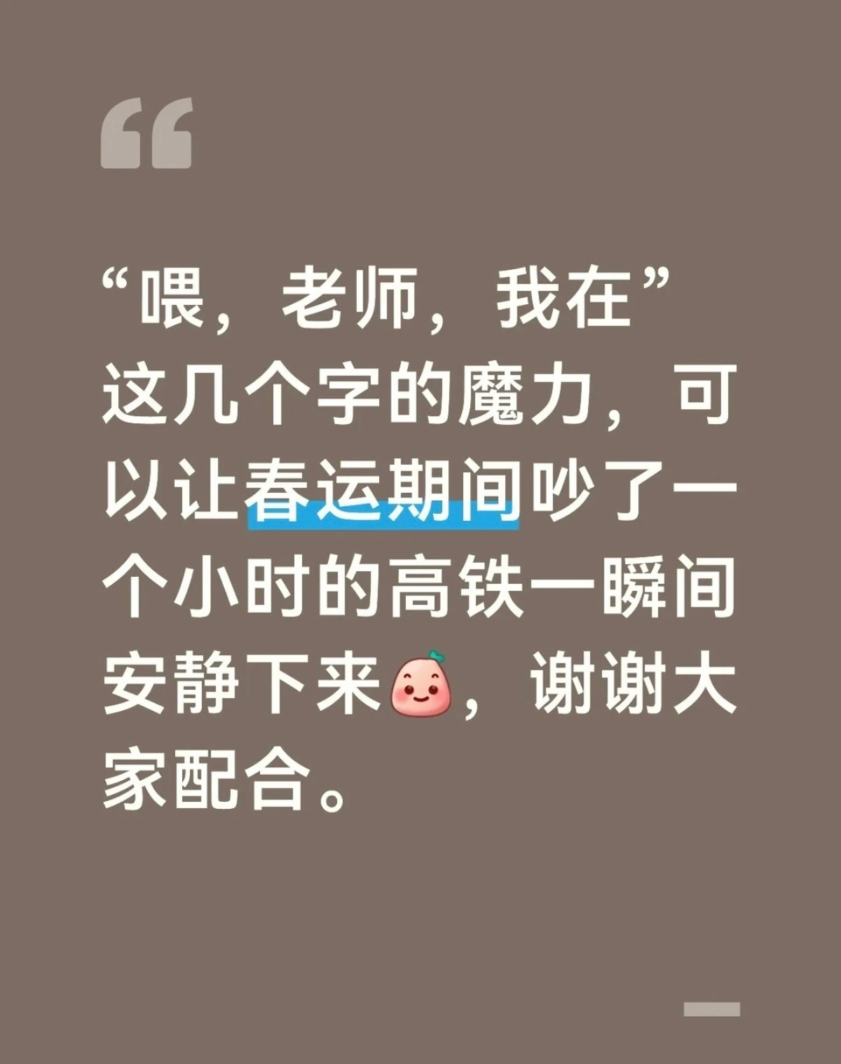 回导师的一句话让春运期间高铁瞬间安静