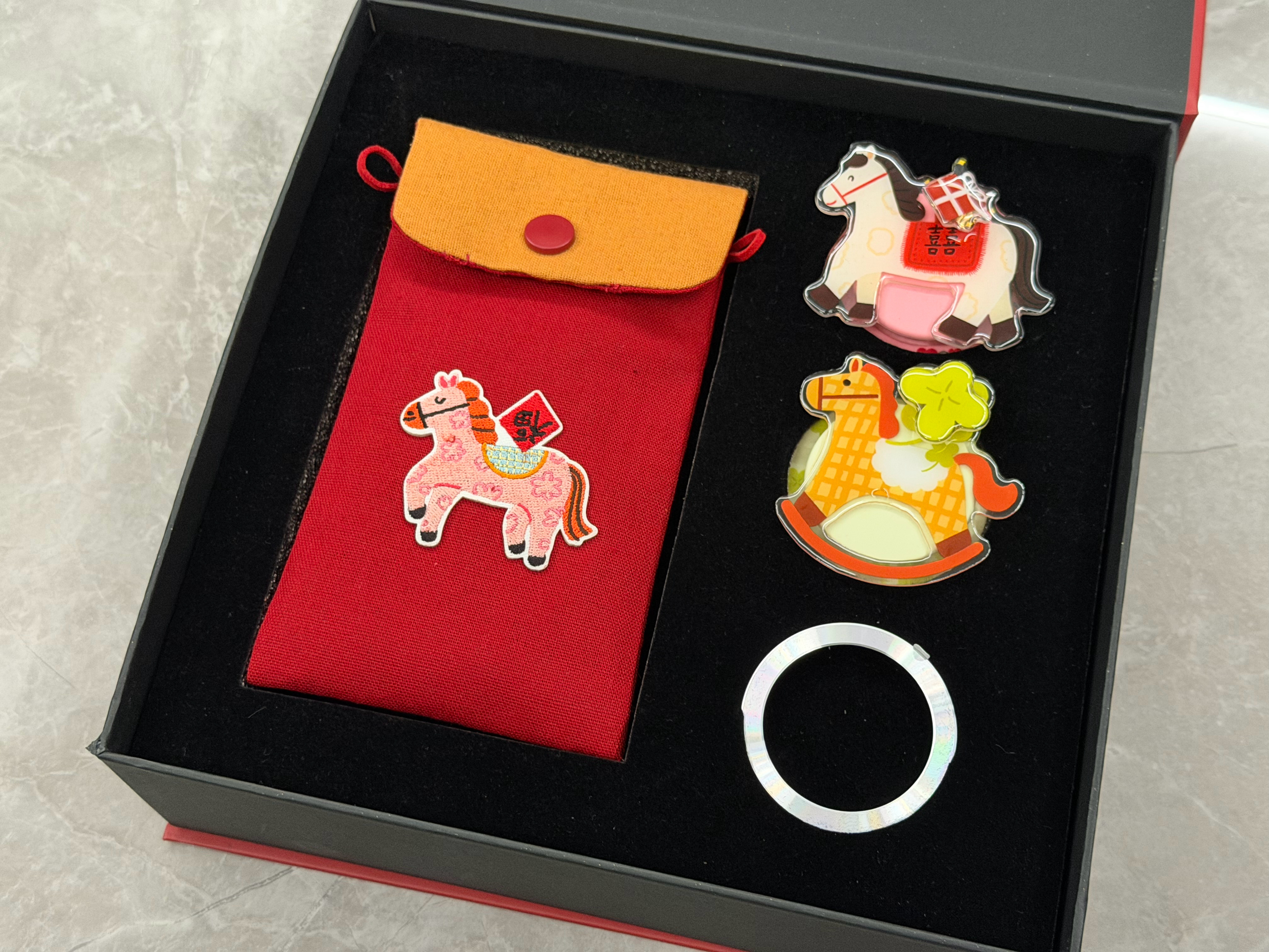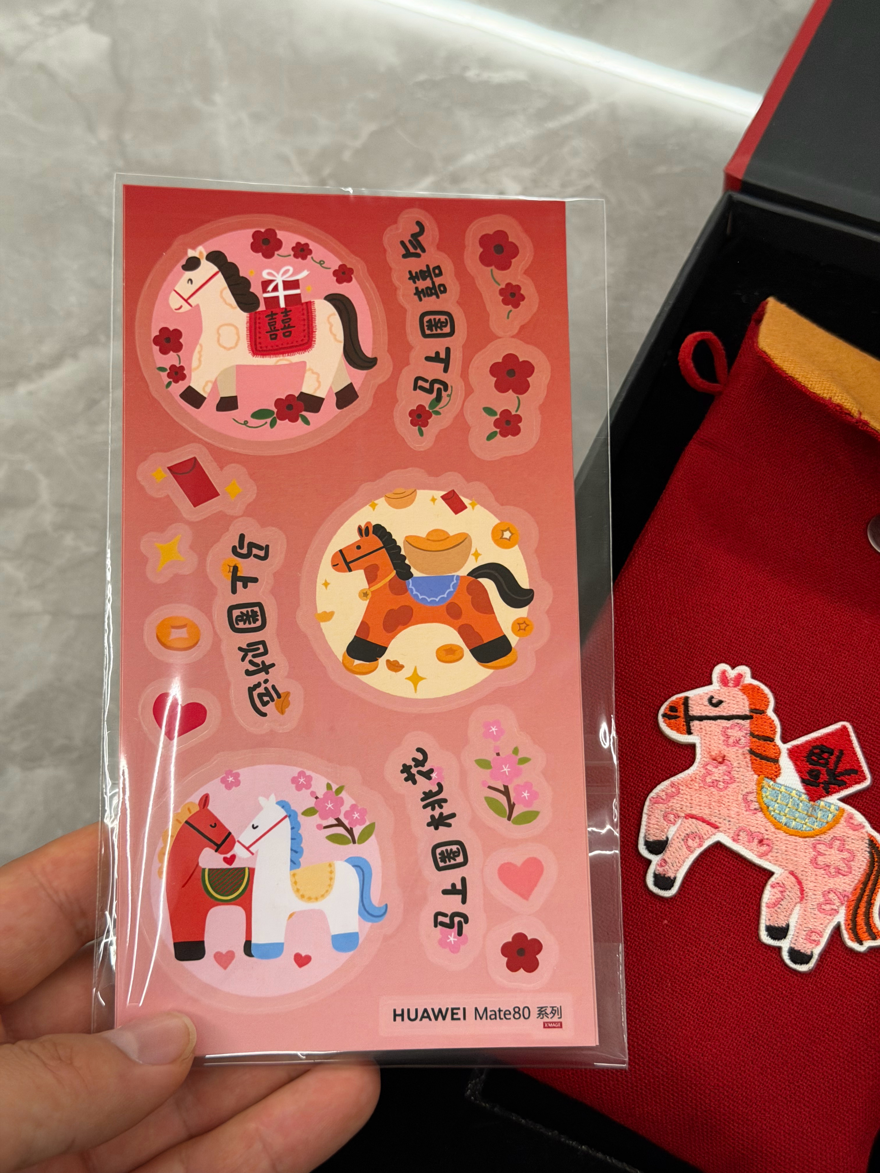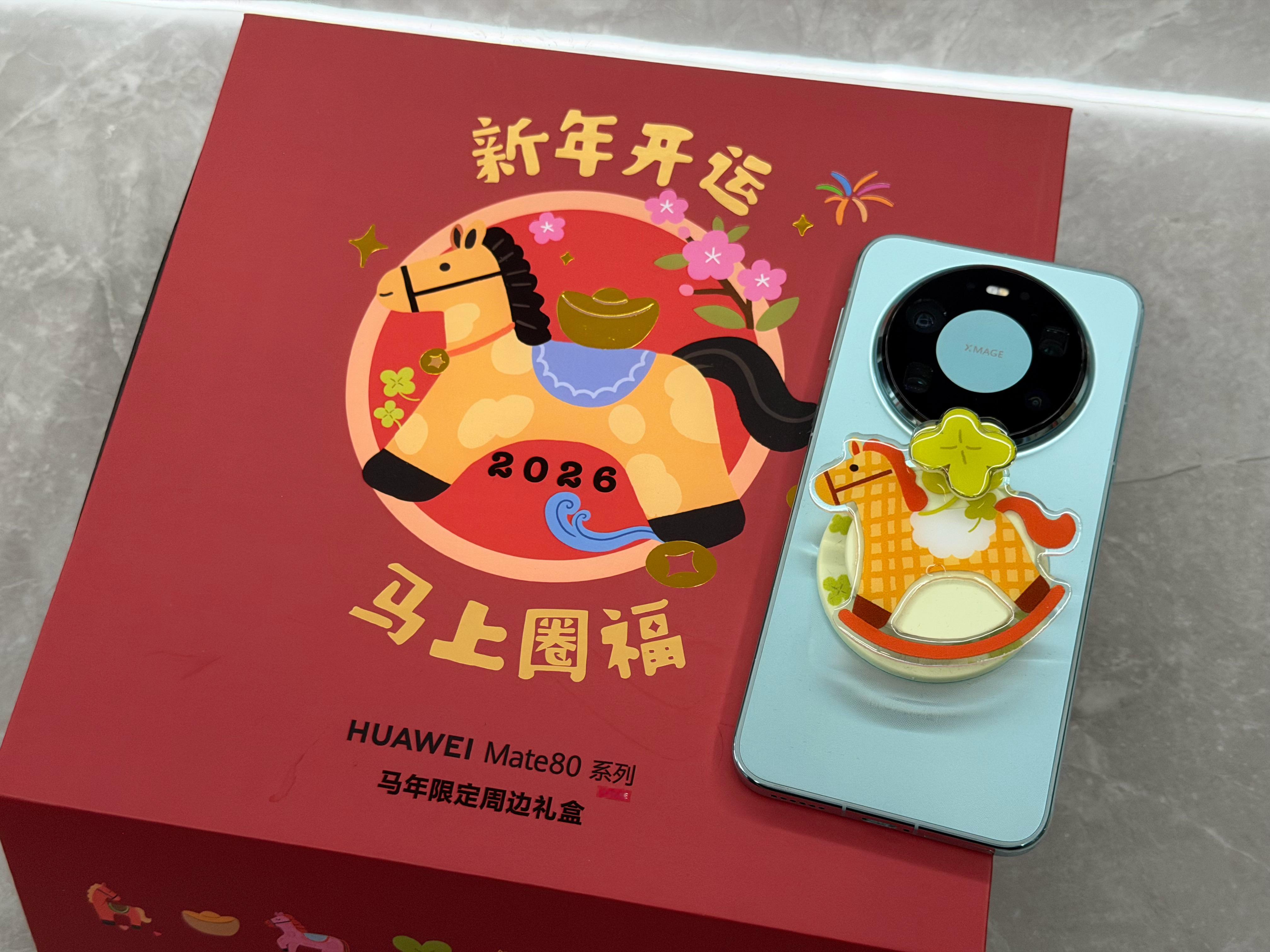 除夕开箱华为Mate 80系列马年限定周边礼盒,传统国风的感觉,马年定制手机包和2个磁吸玩偶支架,提供了一个磁吸环用来固定,喜欢吗?