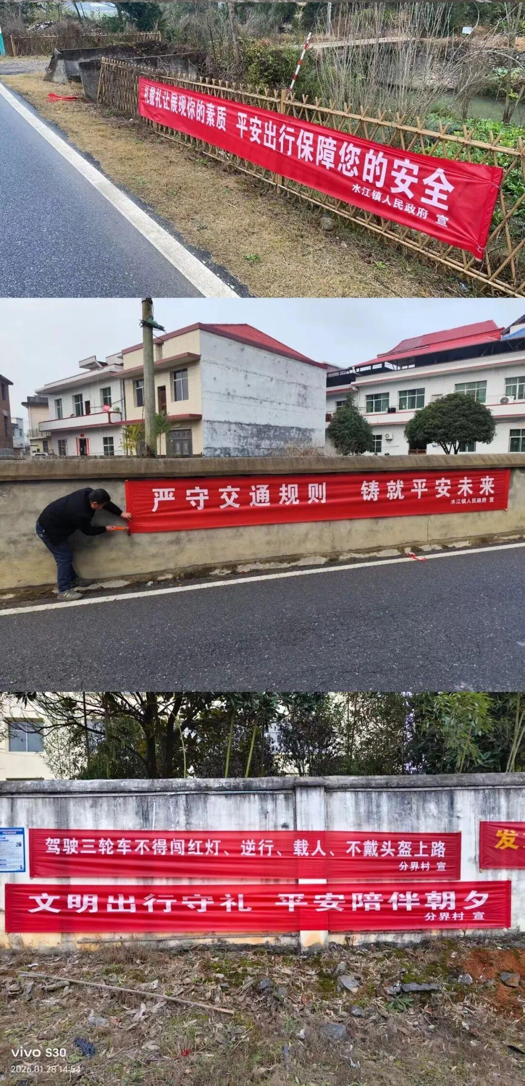 春节临近,安全宣传刻不容缓。袁州一大队与各乡镇街道线上线下联动,实现宣传全覆盖。大队制作20多条春运春节安全标语和宣传片,统一发放使用。秀江街道在社区电子屏滚动播放安全提示;彬江镇通过乡村大喇叭将安全提醒传至田间地头;袁州区3天悬挂安全横幅200多条,西村镇依托村口文化墙打造特色宣传阵地,让安全提示随处可见。通俗易懂、贴近生活的宣传,让文明开车、平安回家的理念深入人心。