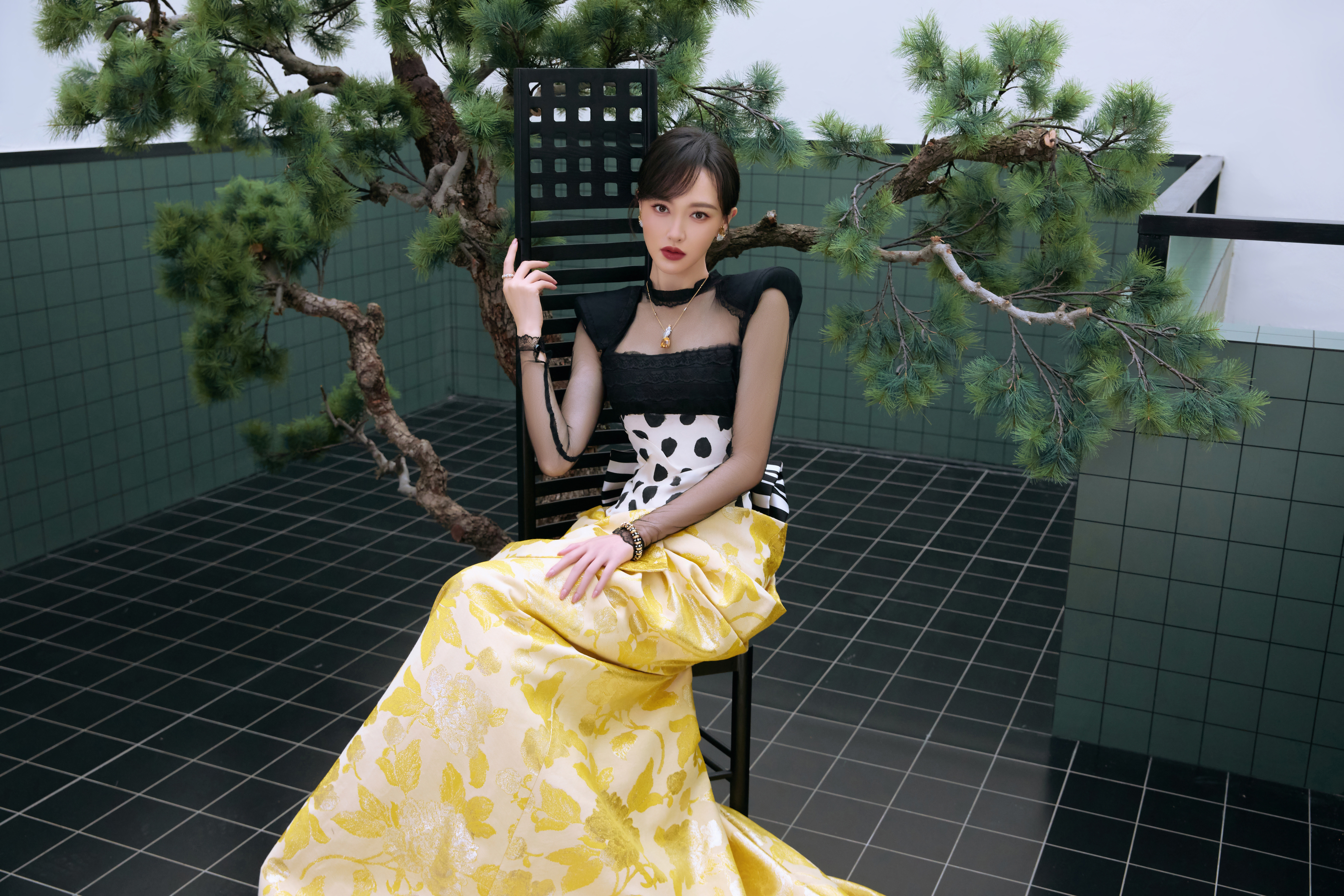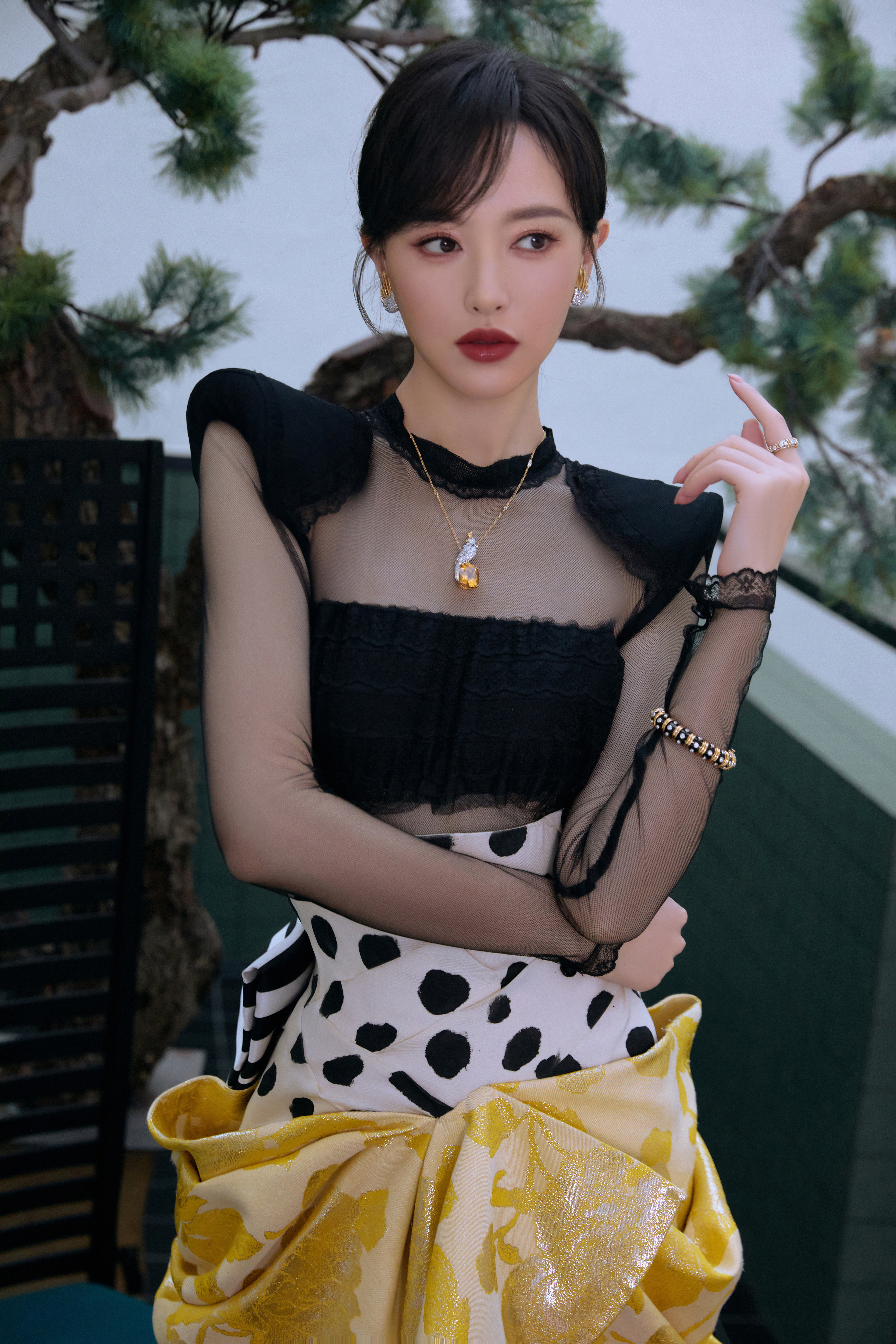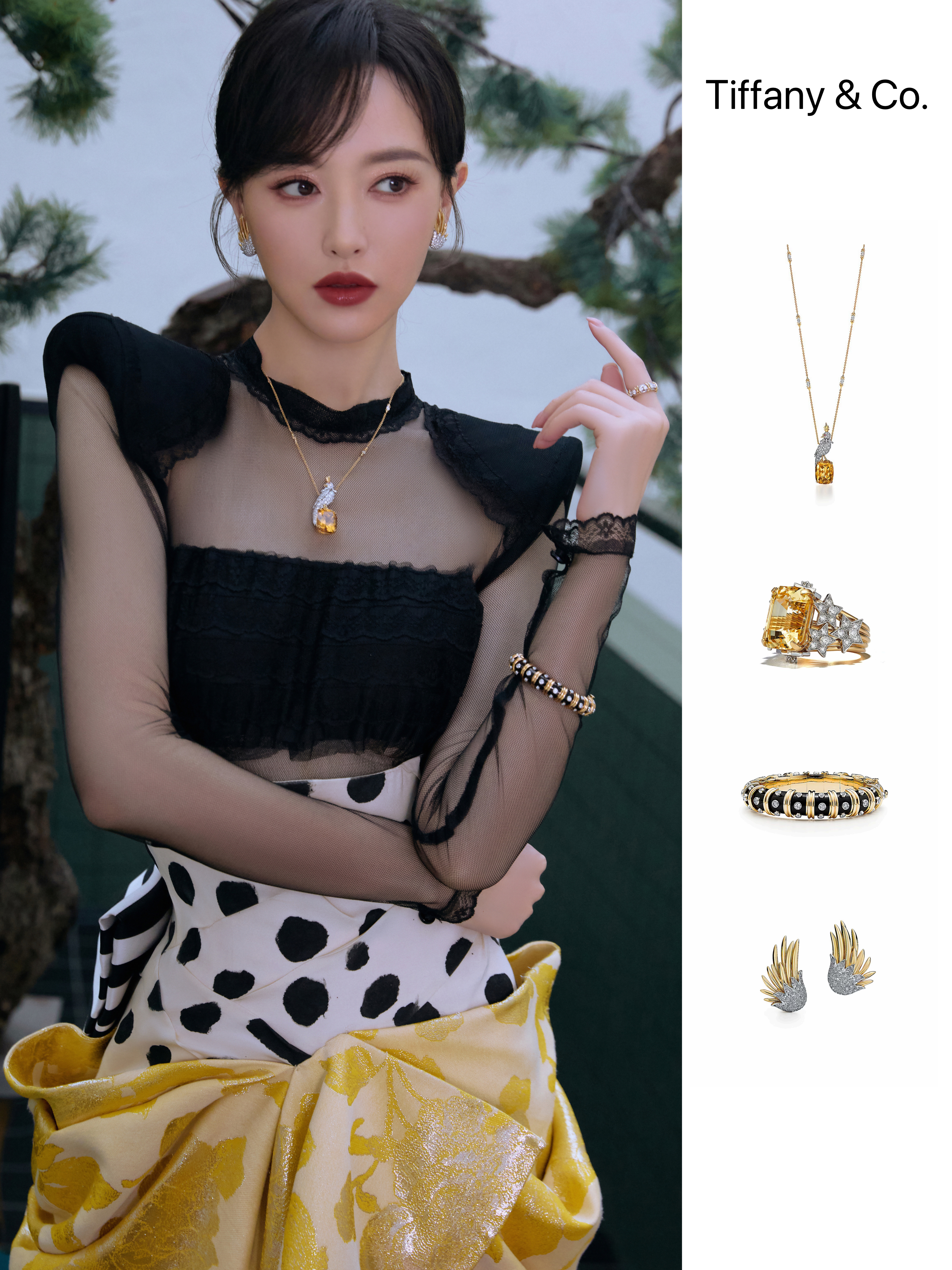新片贺新春,美糖一袭Ronald van der Kemp 2025秋冬高定礼裙,佩戴蒂芙尼让·史隆伯杰高级珠宝系列 “石上鸟”黄水晶项链、黄金黑色珐琅镶钻手镯及铂金及18K黄金镶嵌黄色蓝宝石及钻石戒指、蒂芙尼让·史隆伯杰系列铂金及18K黄金镶钻 Flame 耳夹。金色耀眼,佳人如斯 ✨