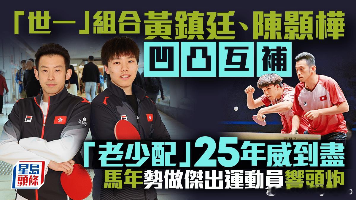 如果不是乒乓球,他们不会有任何交集。两人相差13岁 、一静一动、一右一左、一直一横。正是一凹一凸的性格,他们合作无间在半年前历史性赢得瑞典大满贯双打冠军,3个月前更荣升「世一」至今。黄镇廷、陈颢桦这对「老少配」首次获乒总提名竞逐香港杰出运动员选举的「香港最佳运动组合」,得奖呼声甚高的他们期望于下周新加坡大满贯能马到功成,争马年首冠,顺道为「杰运」壮声势。