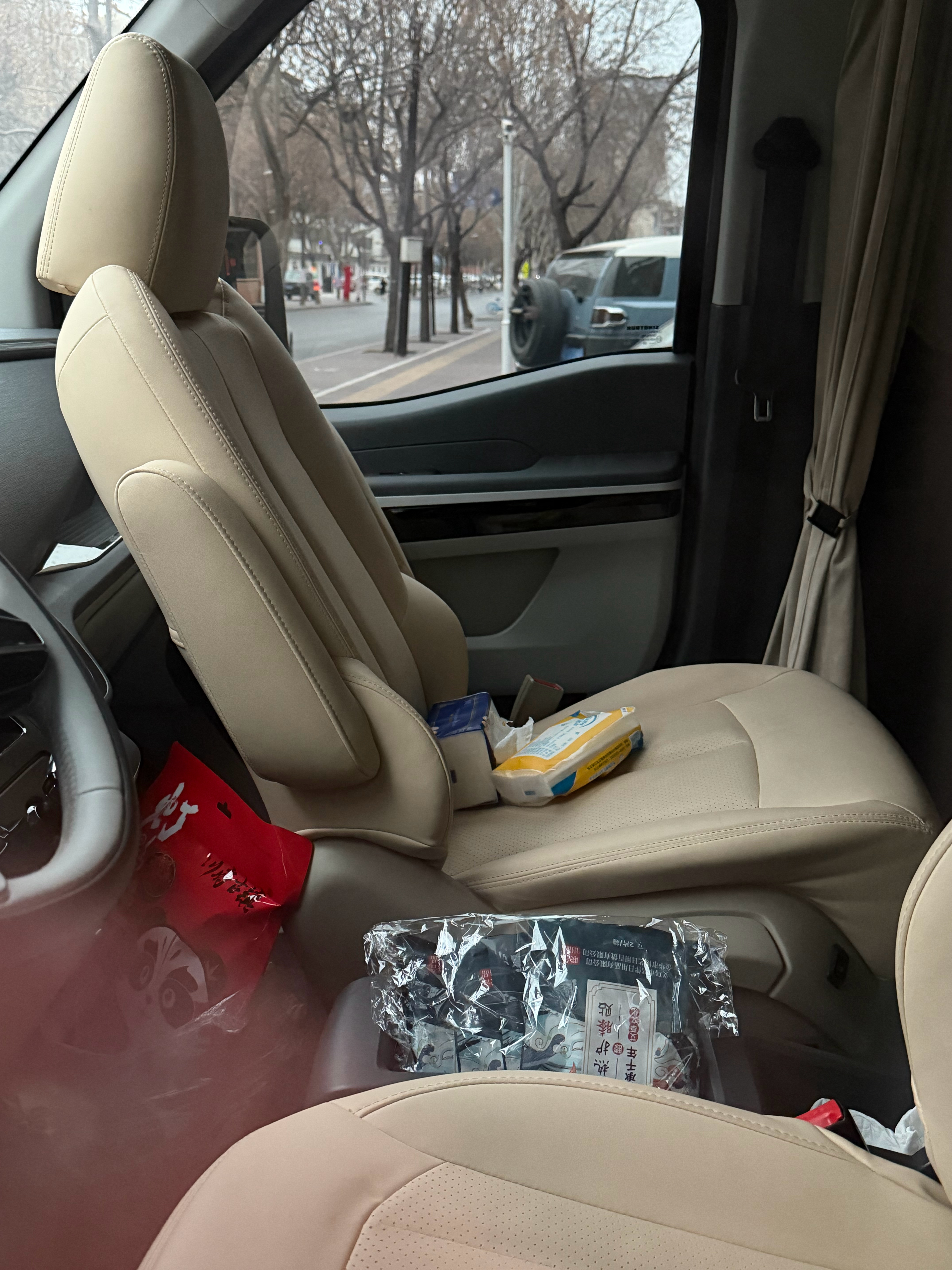 去年在贵州我就看到了这款车好像也不算MPV,这算啥,算箱货吗?我亲戚好多干重卡生意的,所以我对这个车标算是情有独钟,以前叫斯太尔。这个车很大,配上铁圈,外观设计还挺欧系的 干练,精神。我没忍住往里探了个头,发现这副驾座椅还可以这么调整。