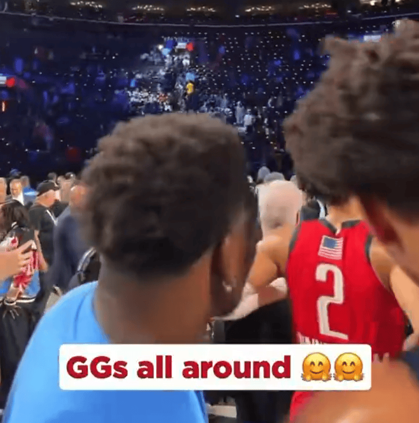 其中,森林狼球员安东尼-爱德华兹与约翰逊拥抱后,用手捂住嘴巴对约翰逊说话,但是声音被录下: