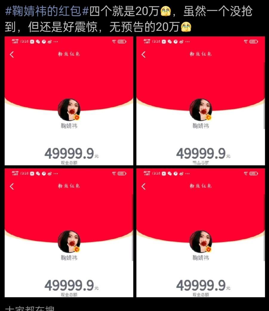 鞠婧祎除夕发20万红包鞠婧祎又一个散财童子 鞠婧祎发了20万的红包!!鞠婧祎