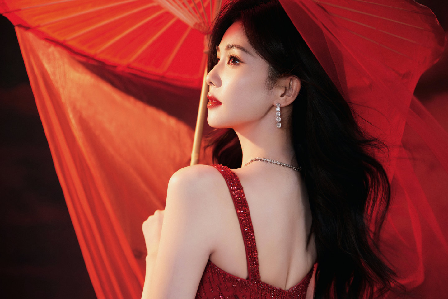 白鹿年夜红裙启新篇白鹿除夕亮片裙